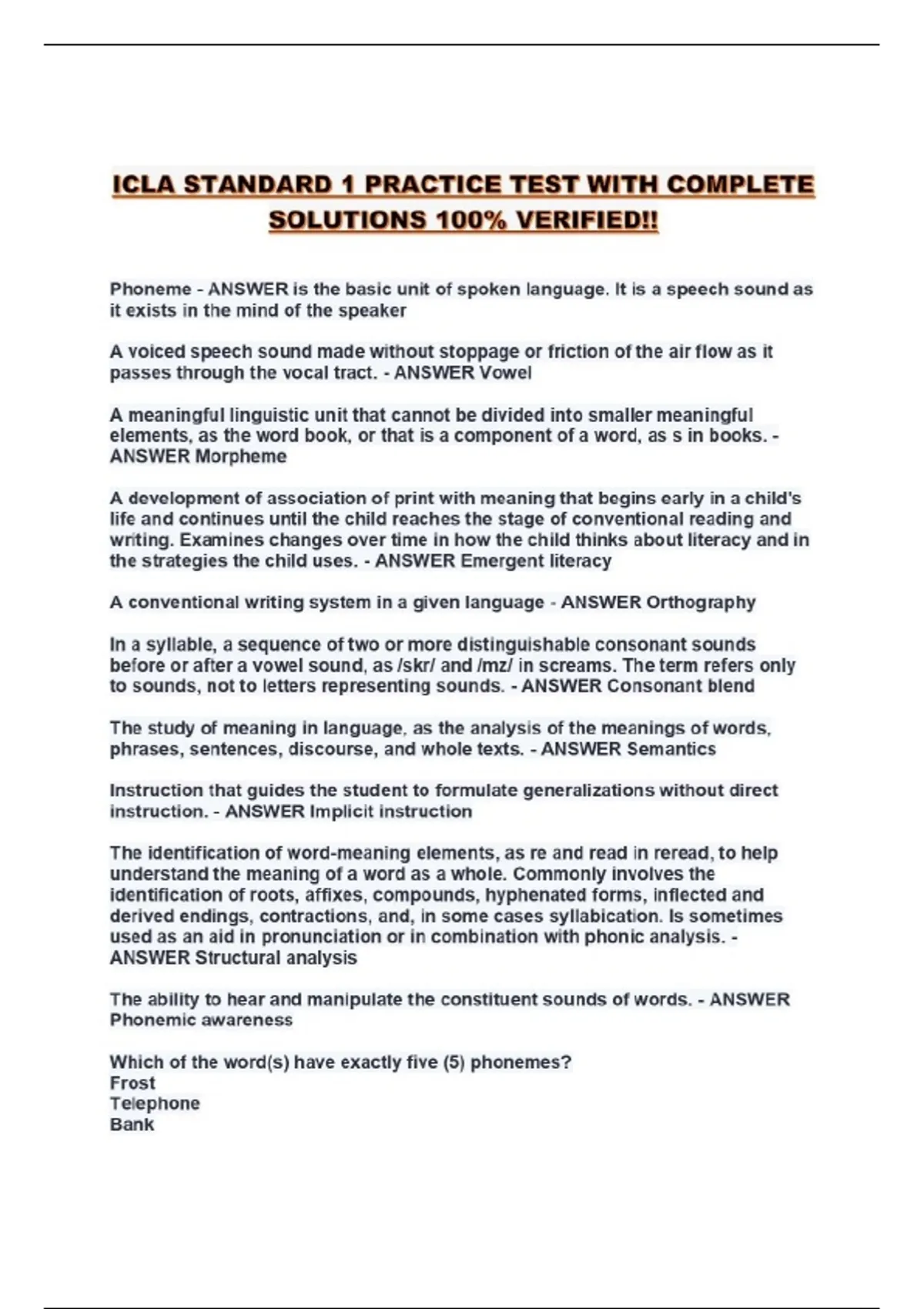 icla standard 1 practice test with complete sol
