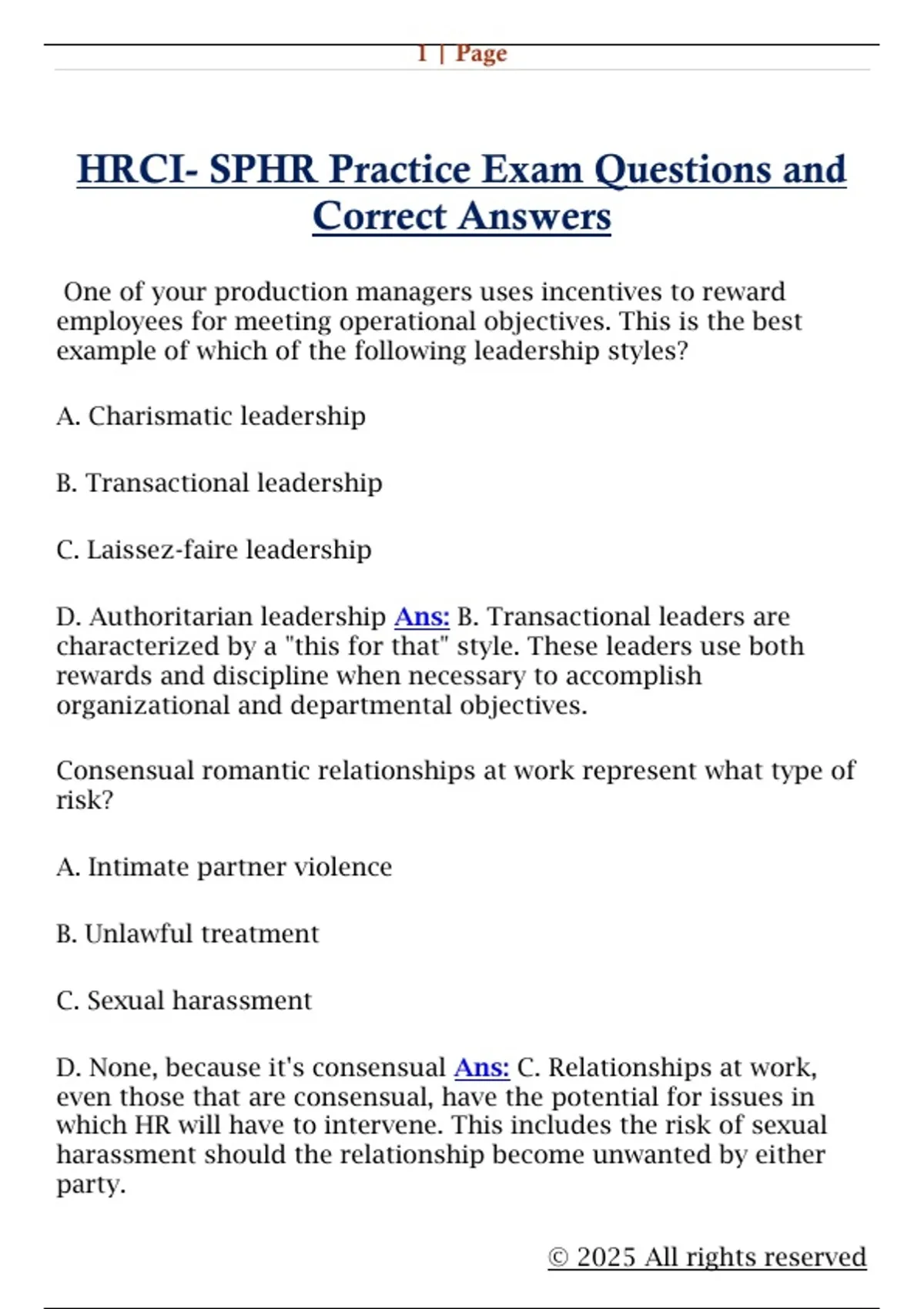 D. Authoritarian leadership Ans: B. Transactional leaders are