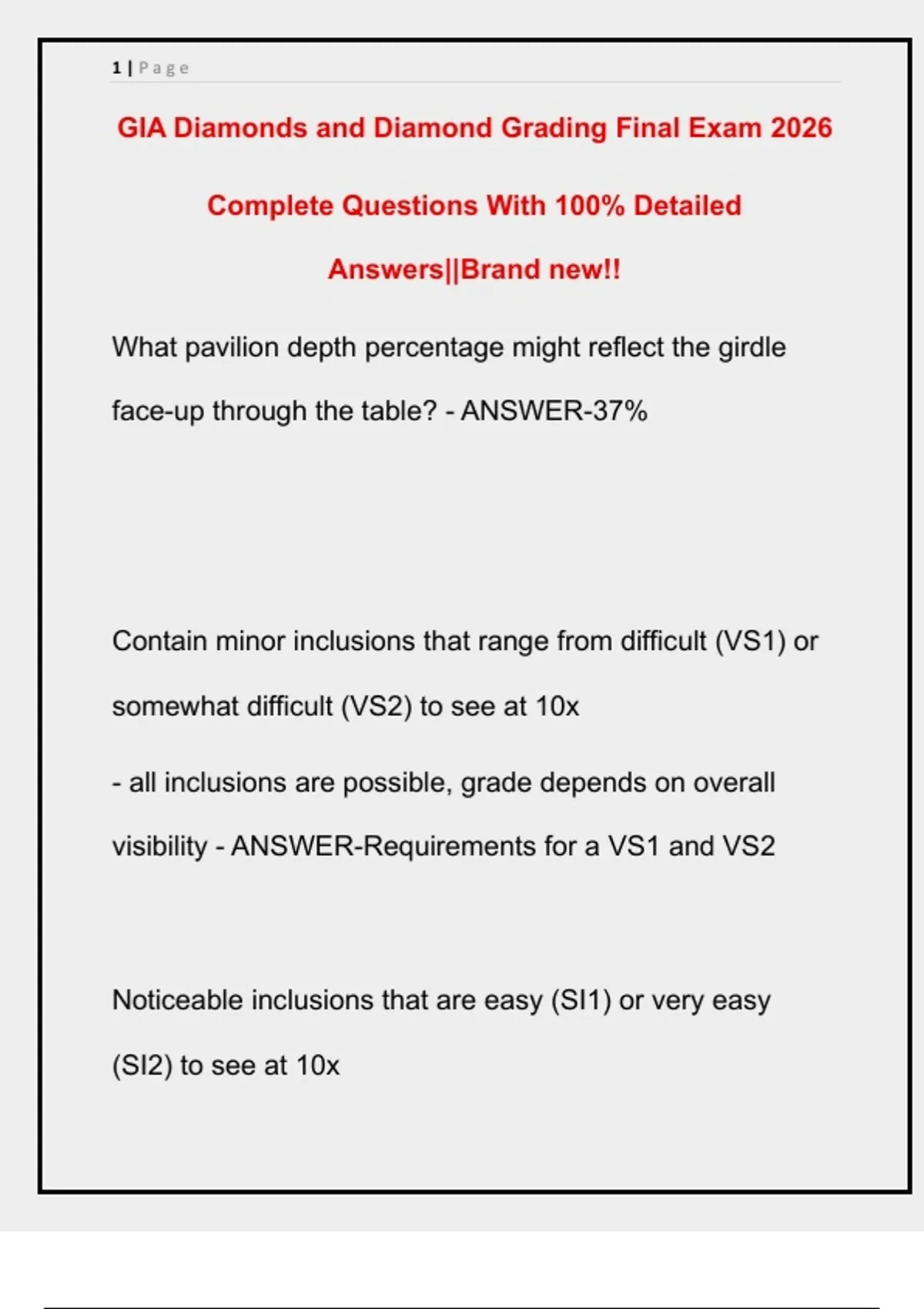GIA Diamonds and Diamond Grading Final Exam 2026