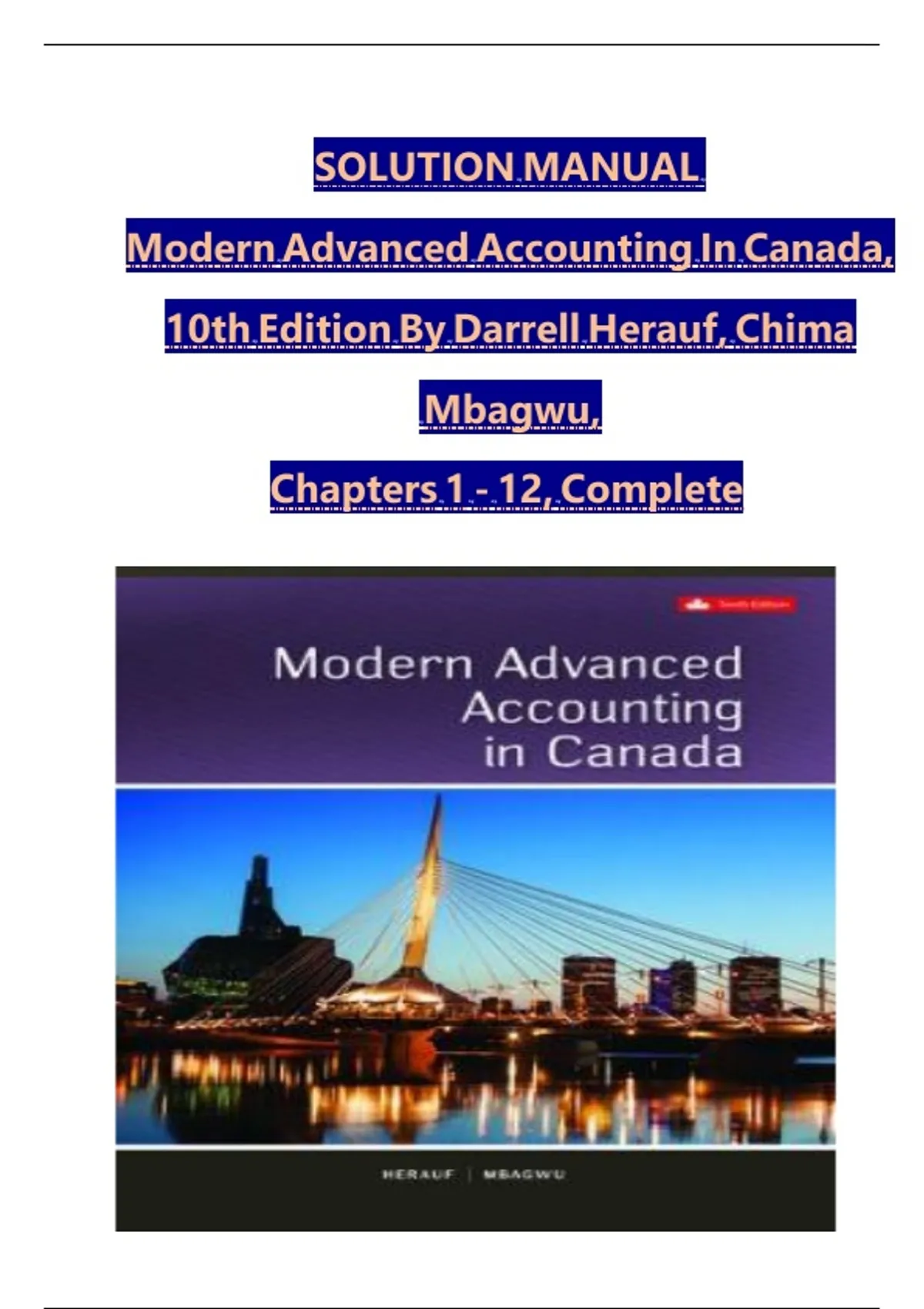 ***** INSTANT DOWNLOAD ****Solution manual for modern advanced accounting in canada 9th edition hilton murray.