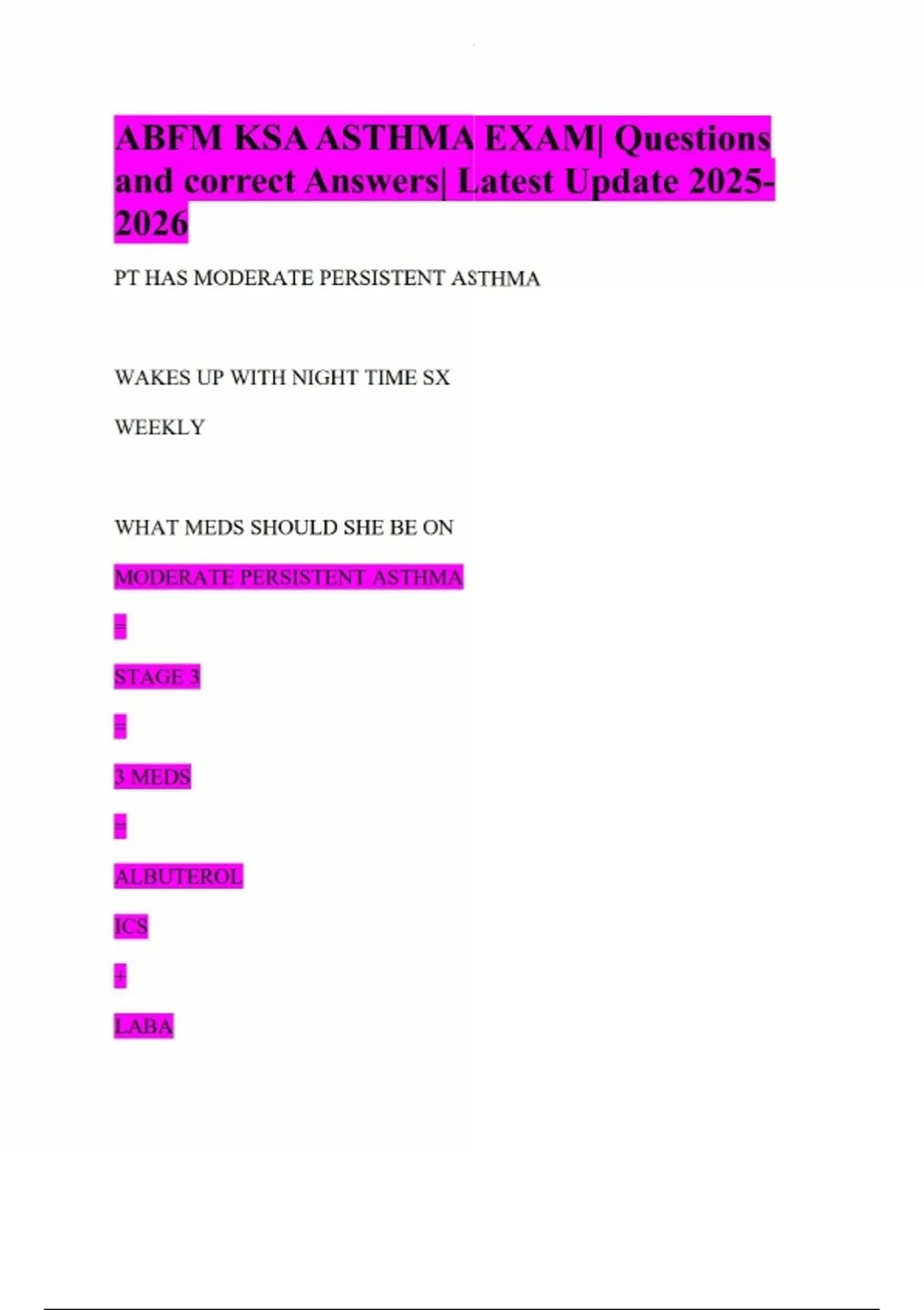 ABFM KSA ASTHMA EXAM| Questions and correct Answers| Latest Update