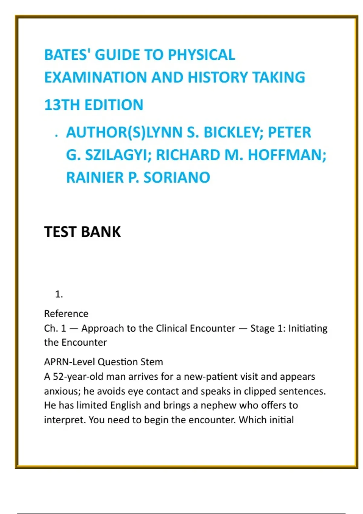 Bates’ Physical Examination 13th Ed Test Bank | OSCE Skills Prep | History & Physical Assessment MCQs + Checklists
