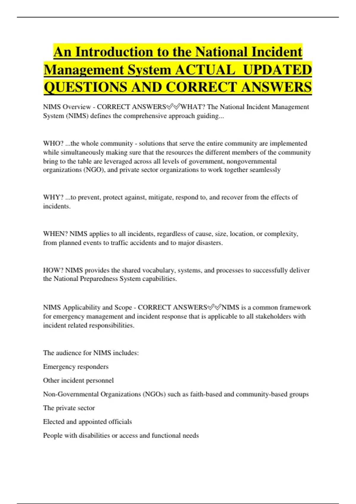 NIMS Overview - CORRECT ANSWERS✅✅WHAT? The National Incident Management