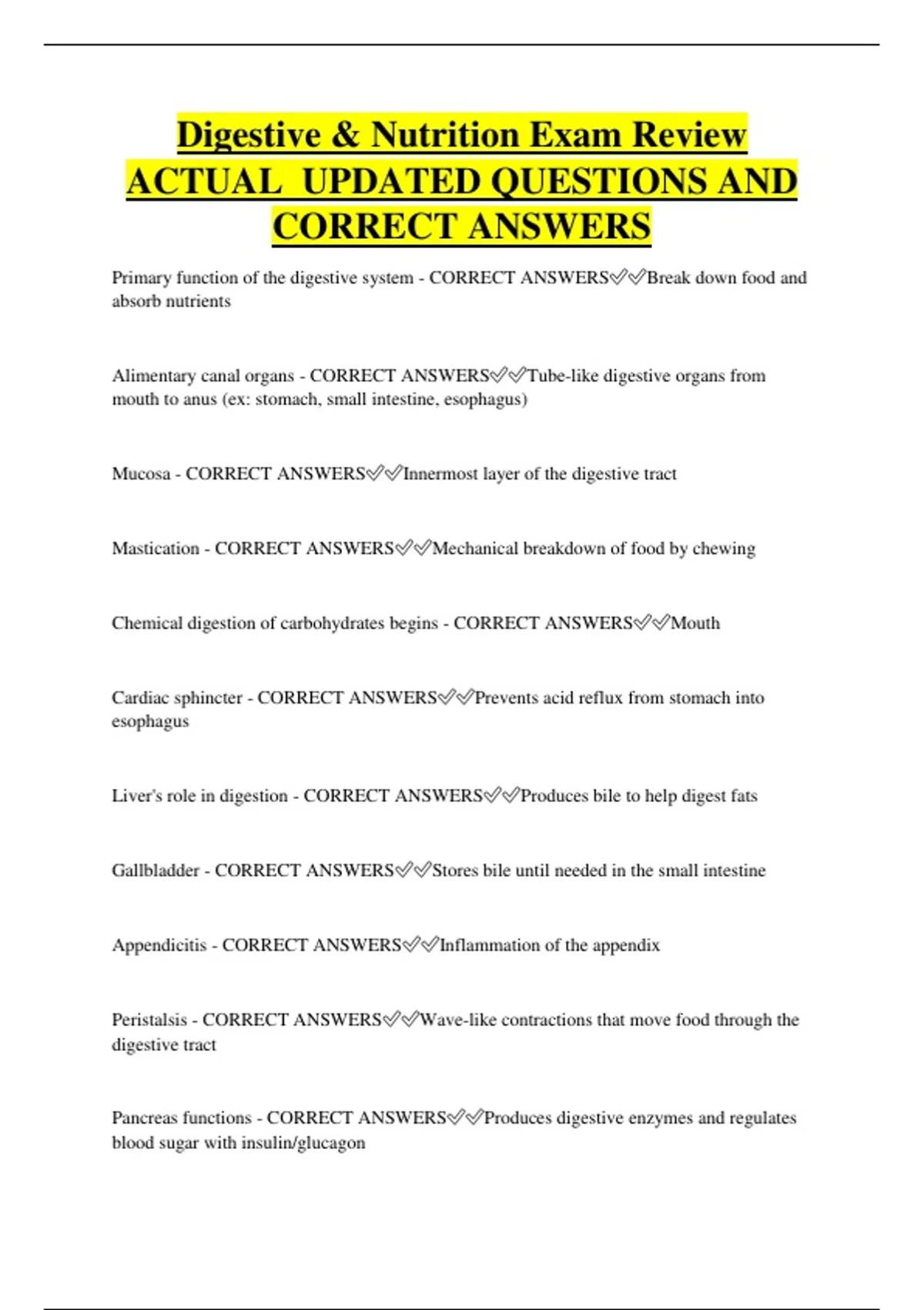 Primary function of the digestive system - CORRECT ANSWERS✅✅Break down food and