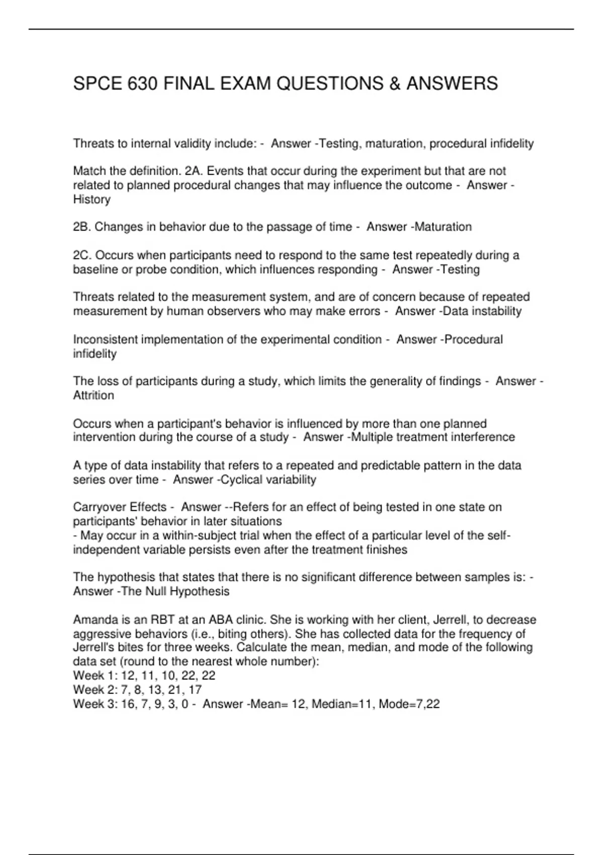 SPCE 630 FINAL EXAM QUESTIONS & ANSWERS