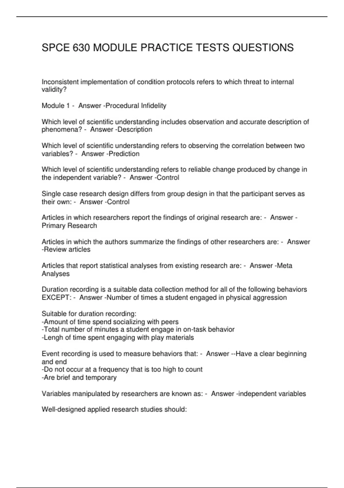 SPCE 630 MODULE PRACTICE TESTS QUESTIONS