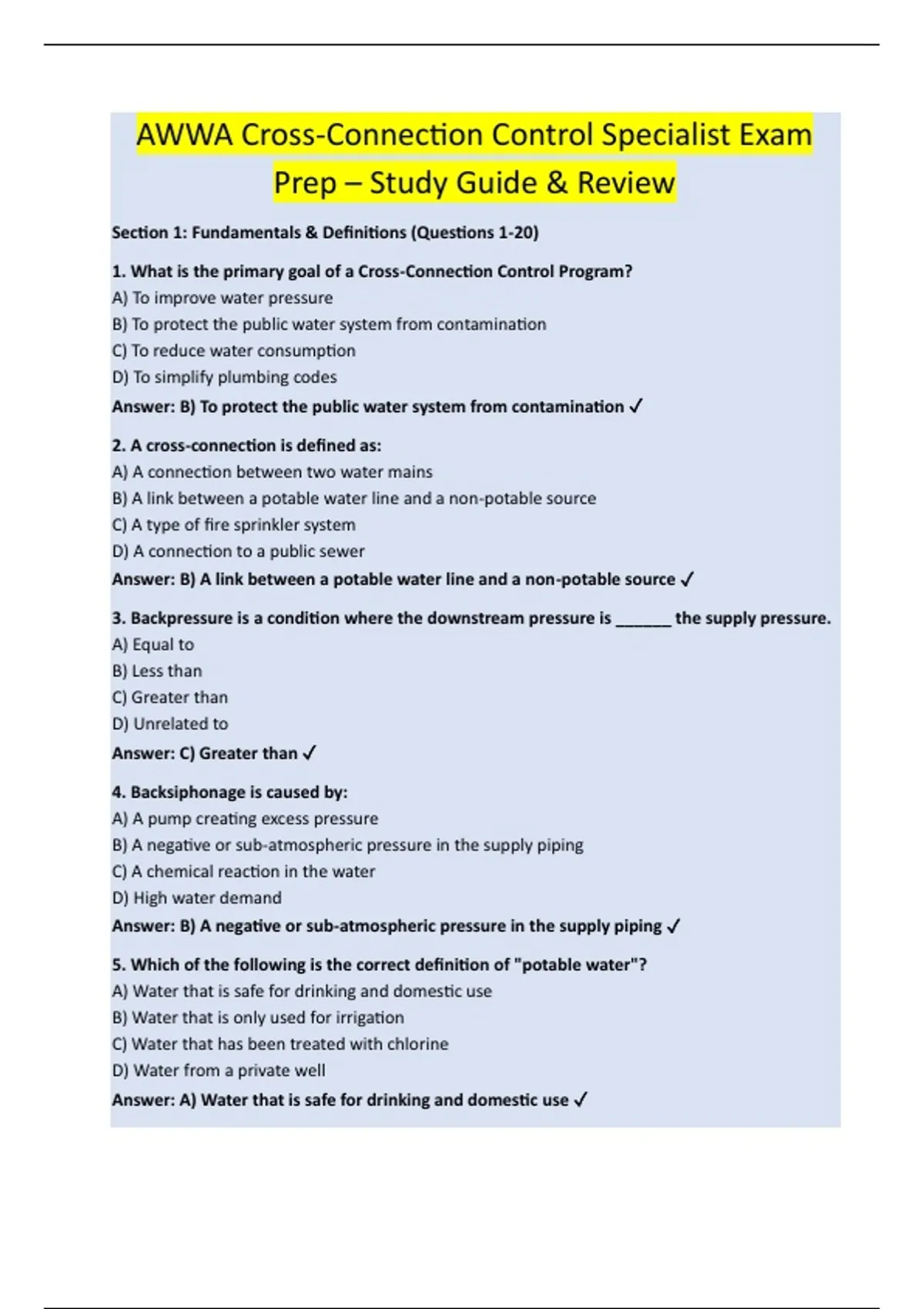 AWWA Cross-Connection Control Specialist Exam Prep – Study Guide & Review