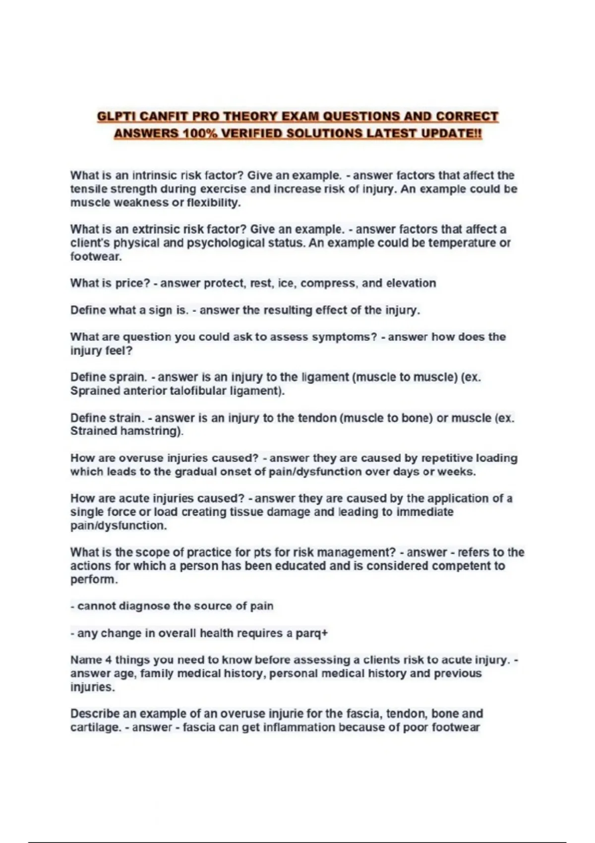 sports medicine eopa review exam with complete sol
