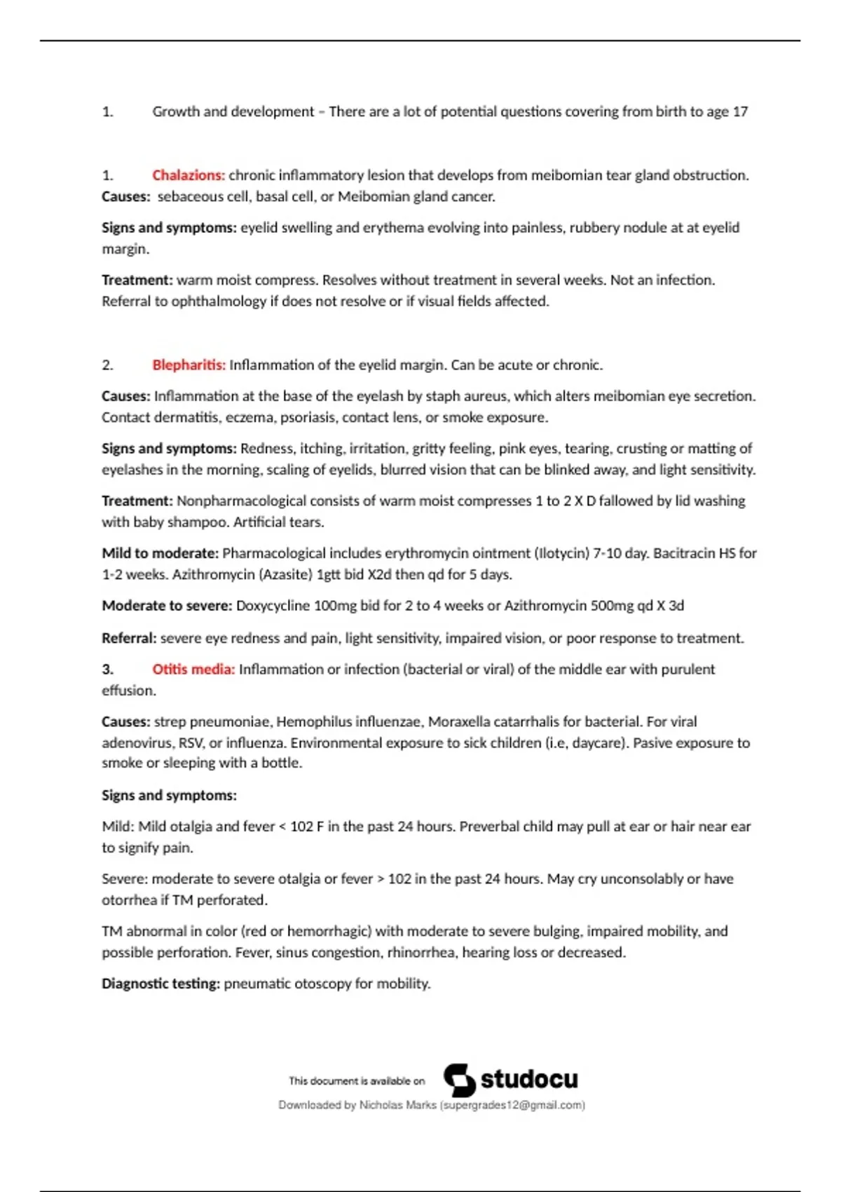 1. Growth and development – There are a lot of potential questions covering from birth to age 17