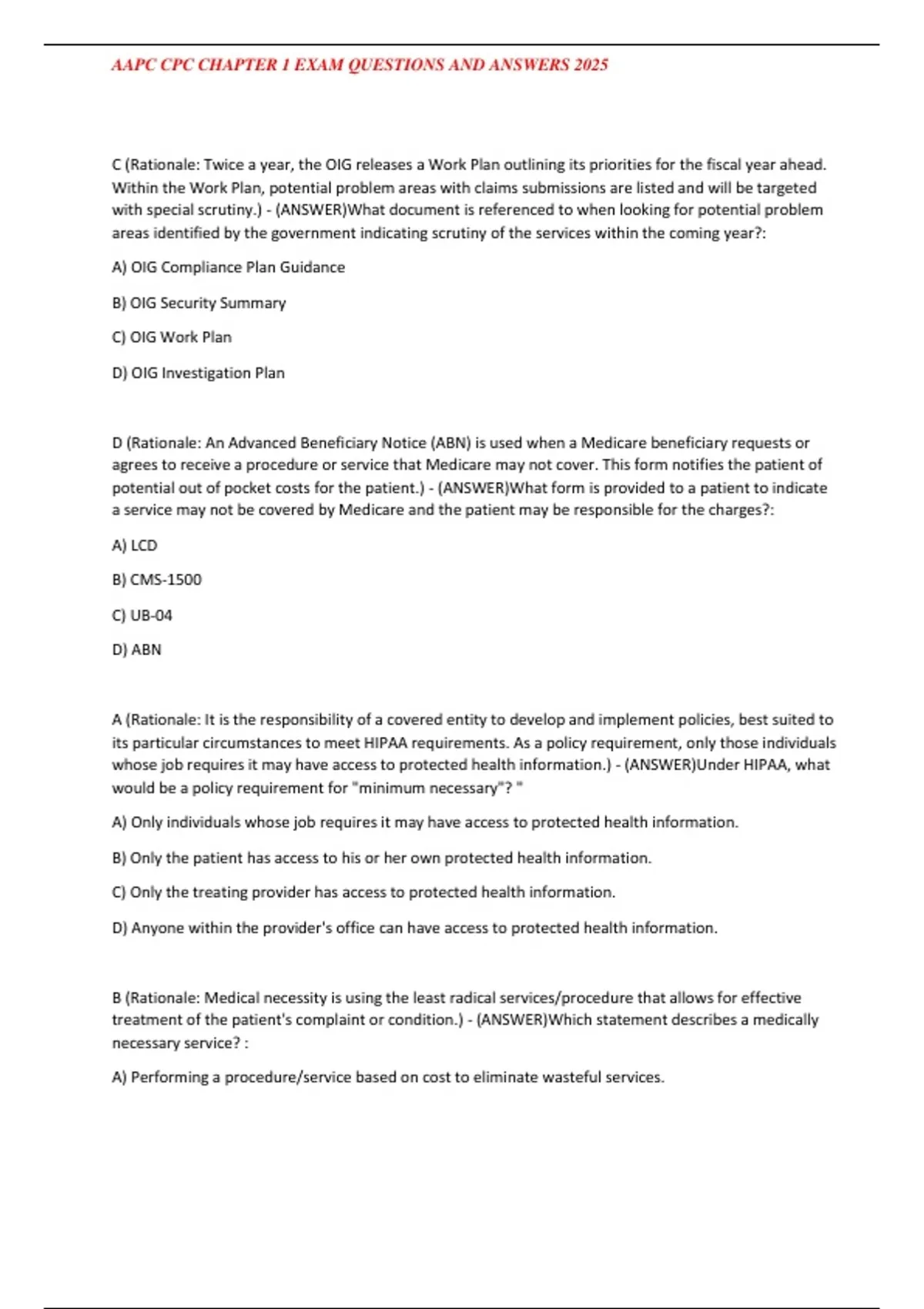 AAPC CPC CHAPTER 1 EXAM QUESTIONS AND ANSWERS 2025