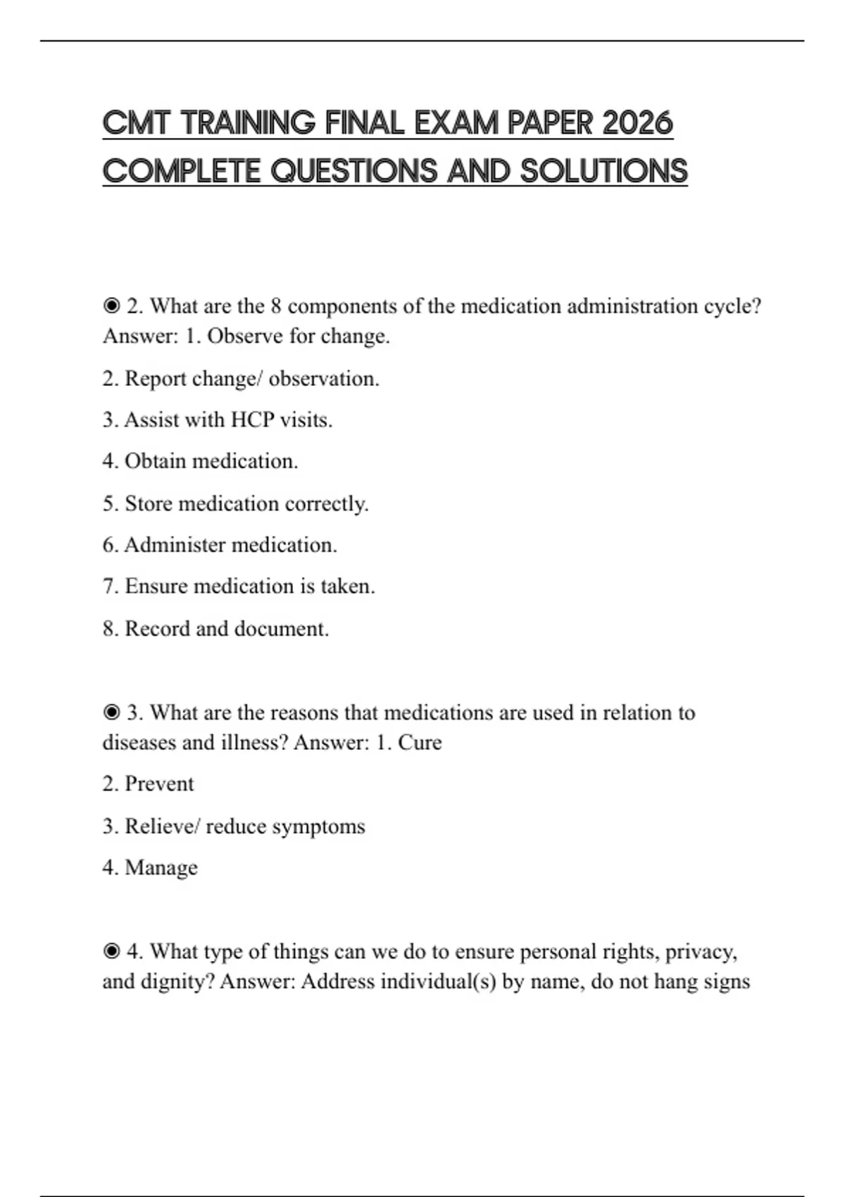 CMT TRAINING FINAL EXAM PAPER 2026 COMPLETE QUESTIONS AND SOLUTIONS
