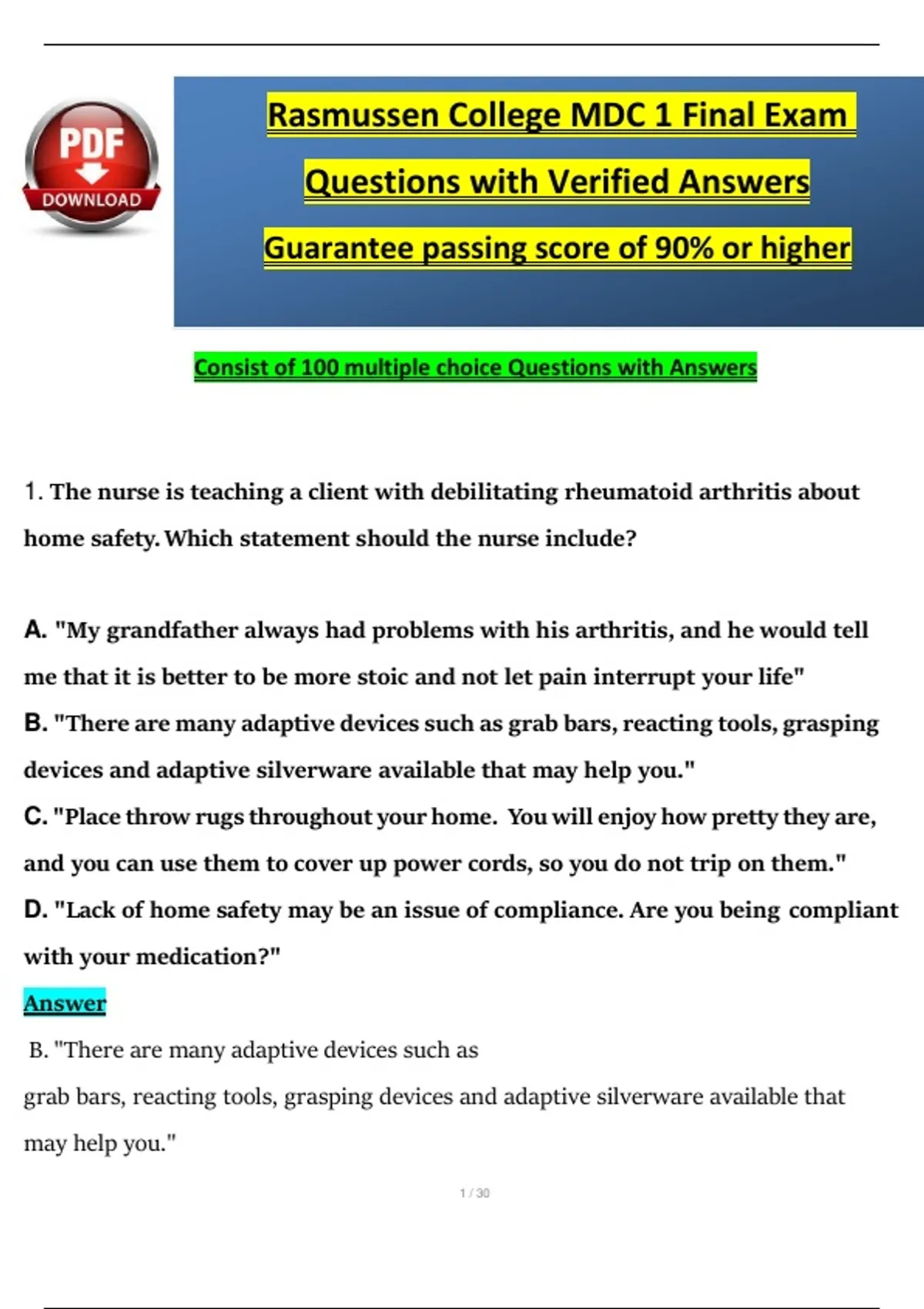 1. The nurse is teaching a client with debilitating rheumatoid arthritis about