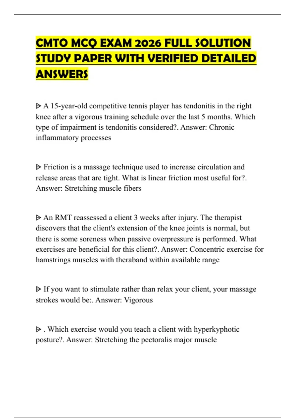 CMTO MCQ EXAM 2026 FULL SOLUTION STUDY PAPER WITH VERIFIED DETAILED ANSWERS