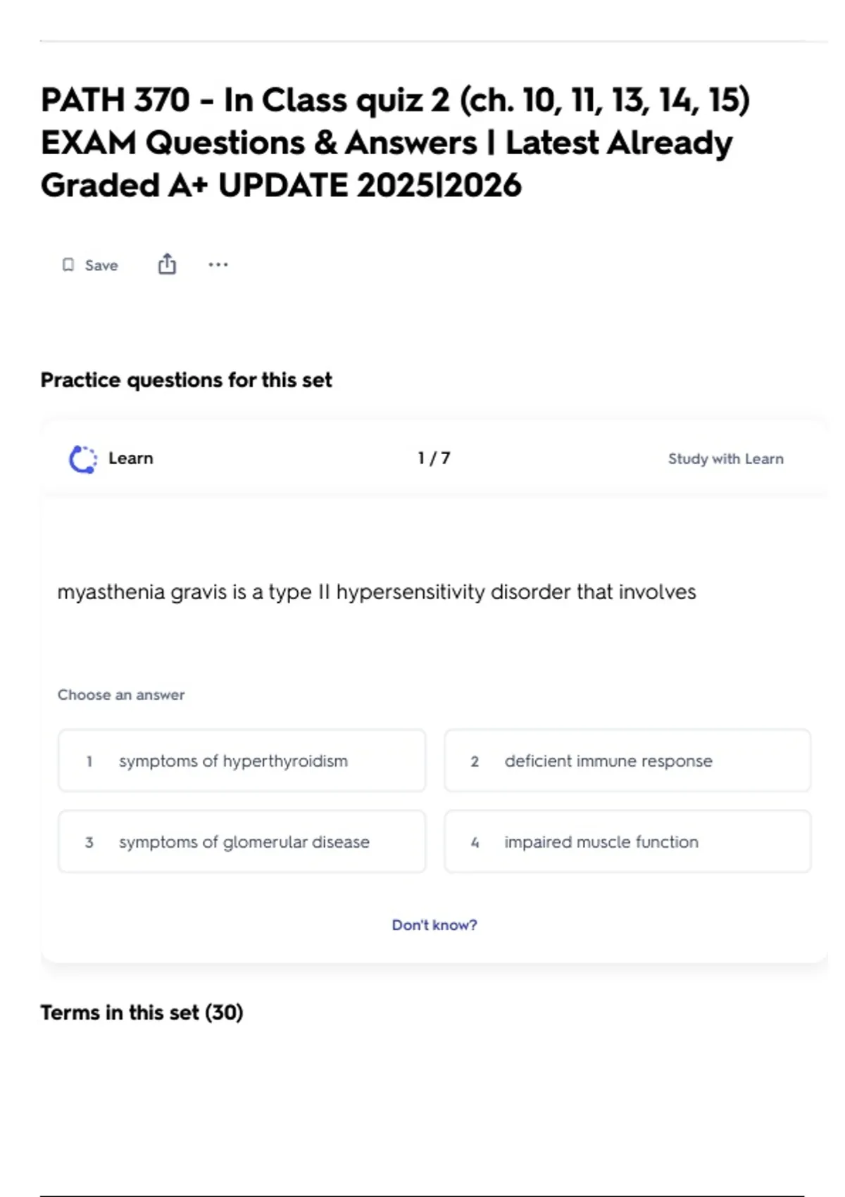 PATH 370 - In Class quiz 2 (ch. 10, 11, 13, 14, 15) EXAM Questions & Answers | Latest Already Graded A+ UPDATE 2025|2026