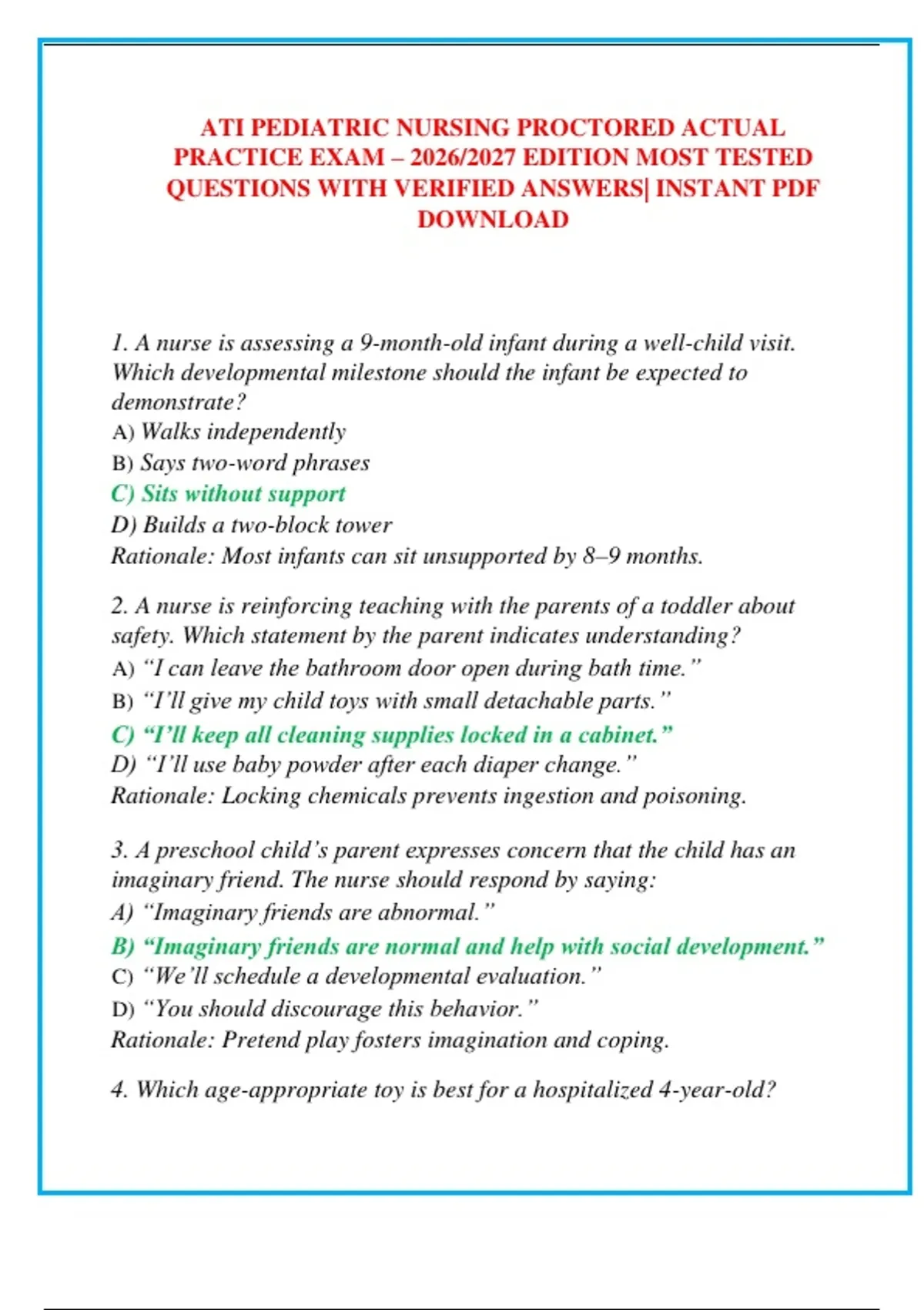 ATI PEDIATRIC NURSING PROCTORED ACTUAL