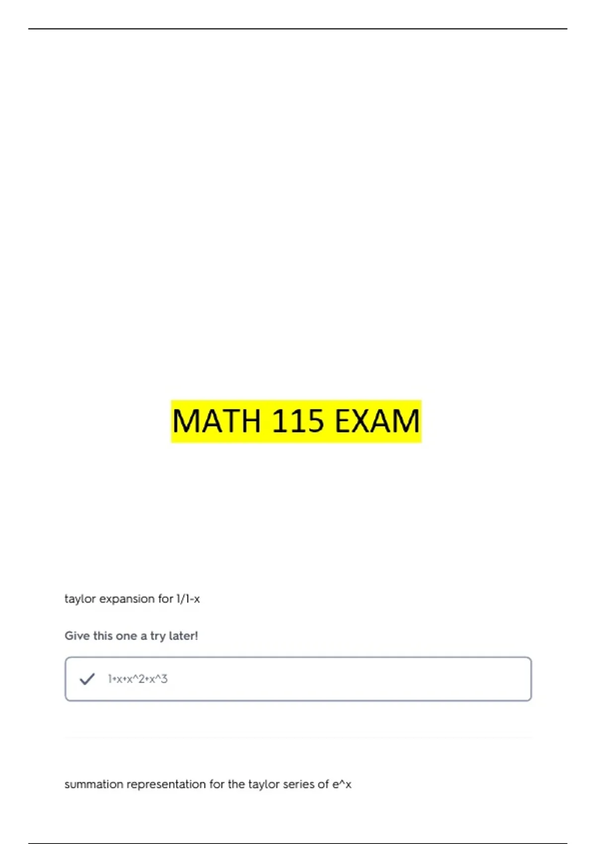 MATH 115 FINAL EXAM QUESTIONS AND ANSWERS WITH COMPLETE SOLUTIONS