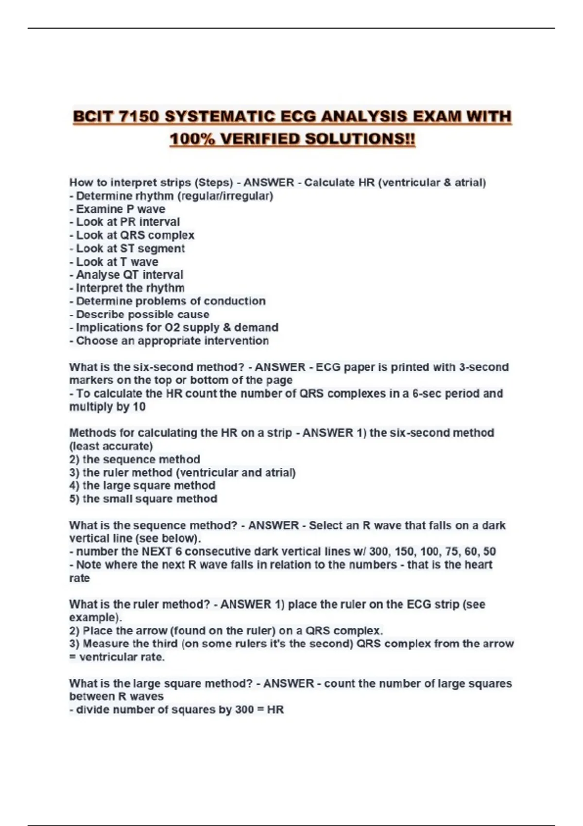 BCIT 7150 SYSTEMATIC ECG ANALYSIS EXAM WITH 100% VERIFIED SOLUTIONS!!...