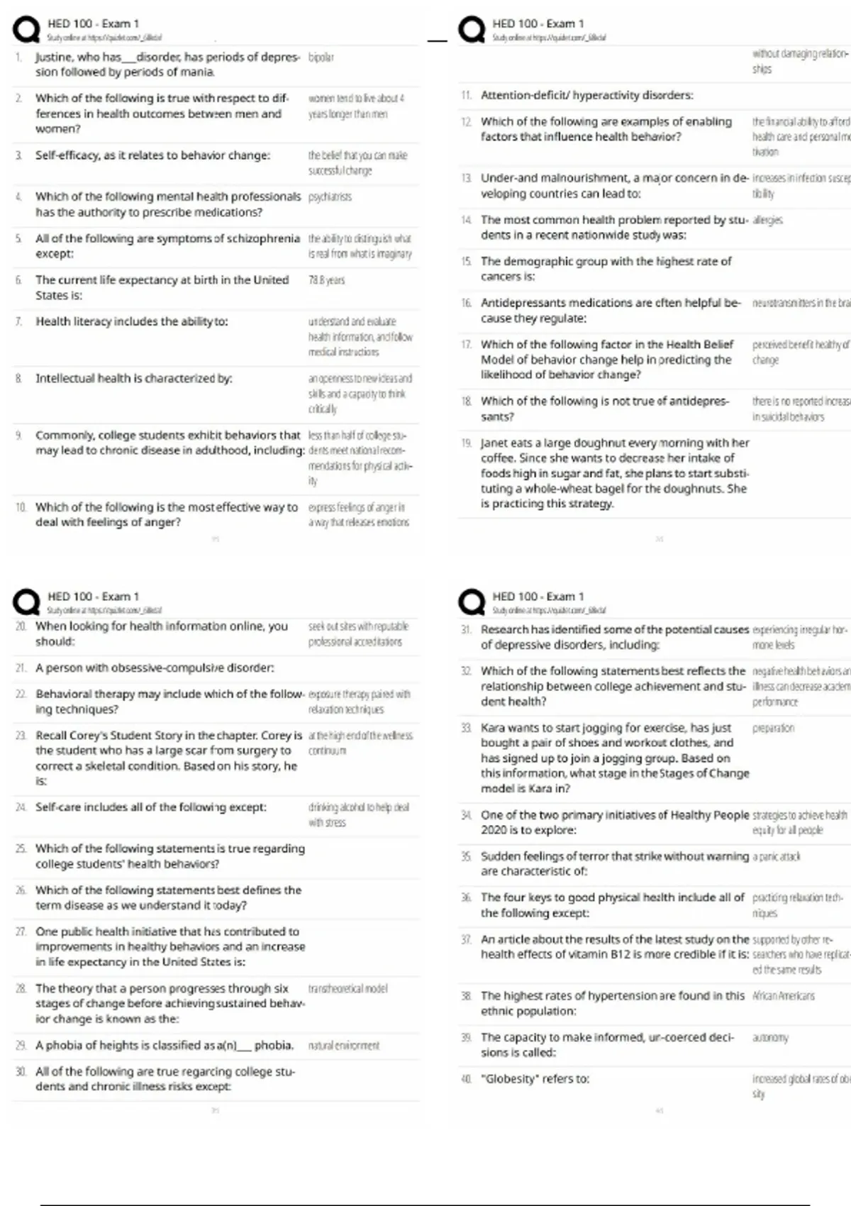 hed 100 quiz questions
