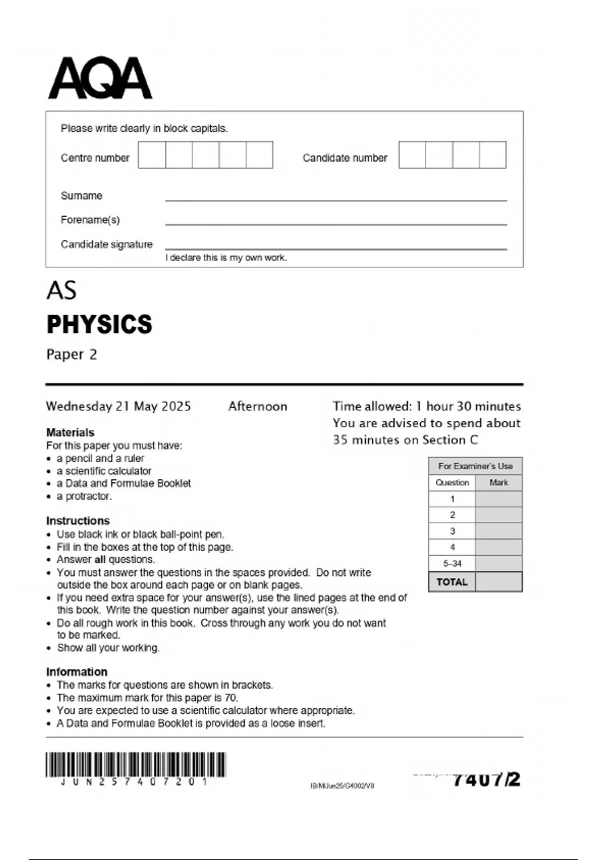 AQA AS Physics Paper 2 2025 | Full Revision Guide