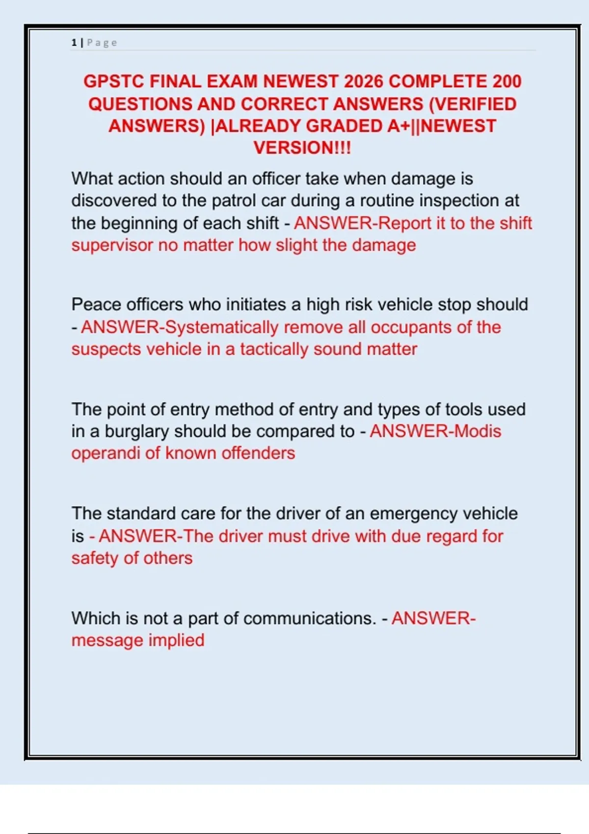 GPSTC FINAL EXAM NEWEST 2026 COMPLETE 200