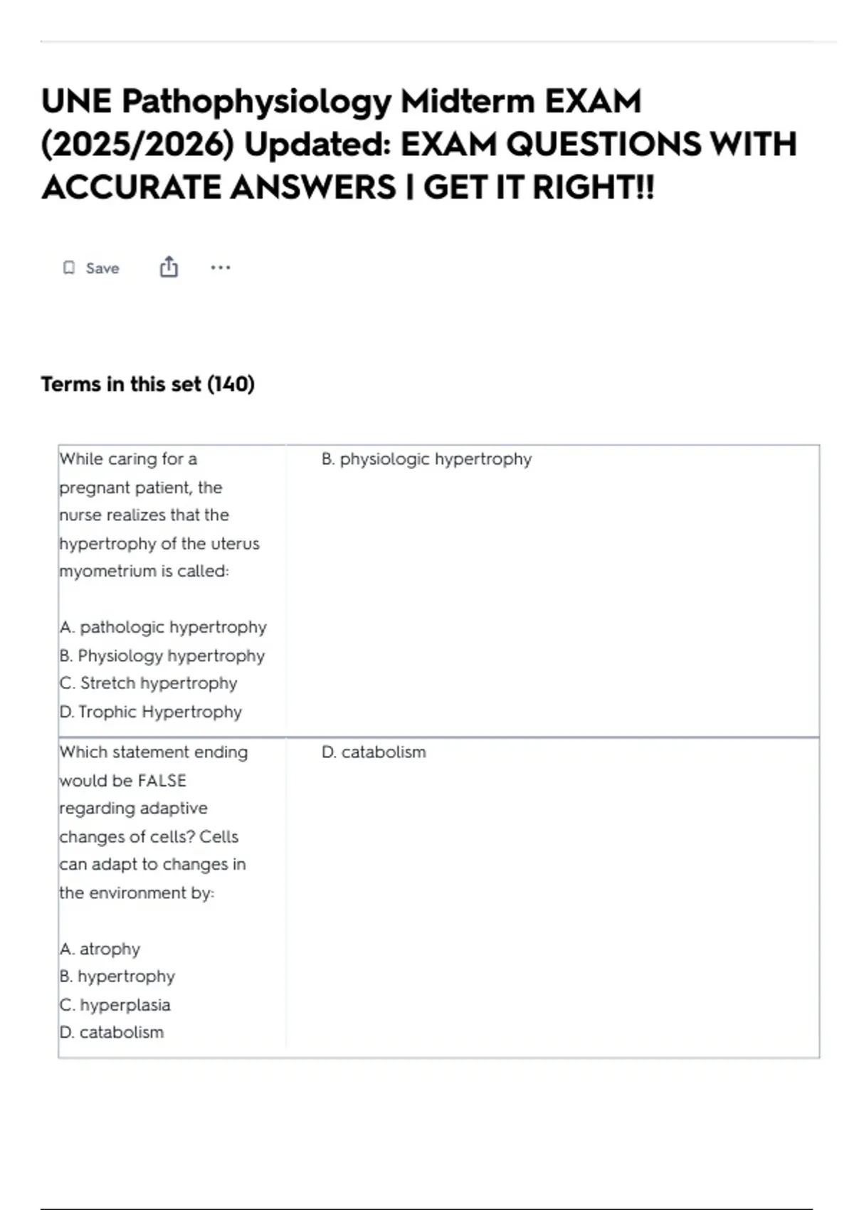 UNE Pathophysiology Midterm EXAM (2025/2026) Updated: EXAM QUESTIONS WITH ACCURATE ANSWERS | GET IT RIGHT!!