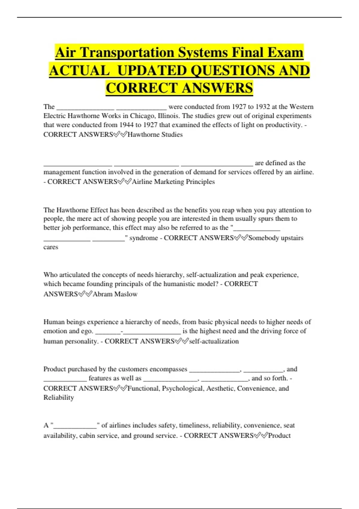 - CORRECT ANSWERS✅✅Airline Marketing Principles