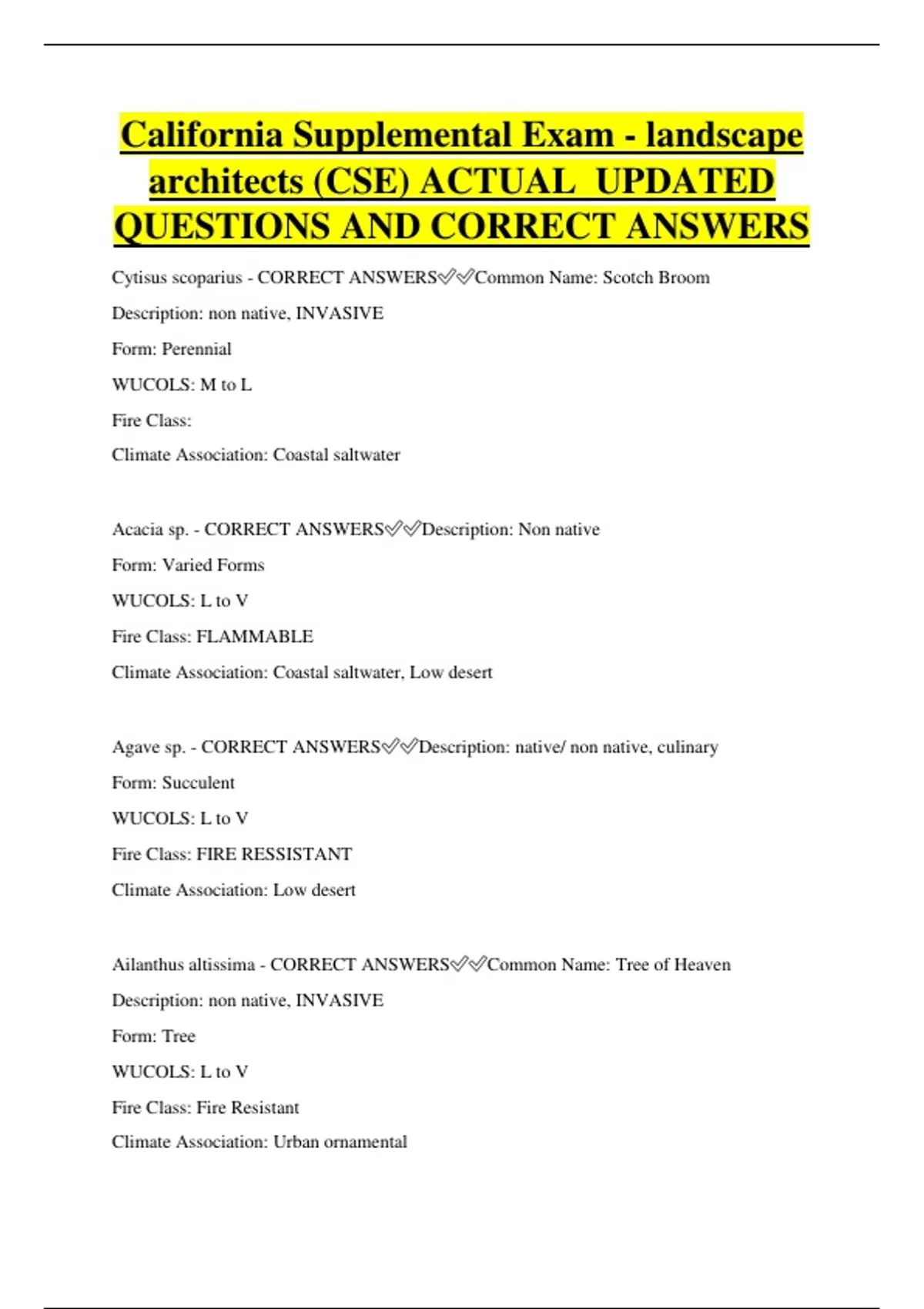 Cytisus scoparius - CORRECT ANSWERS✅✅Common Name: Scotch Broom