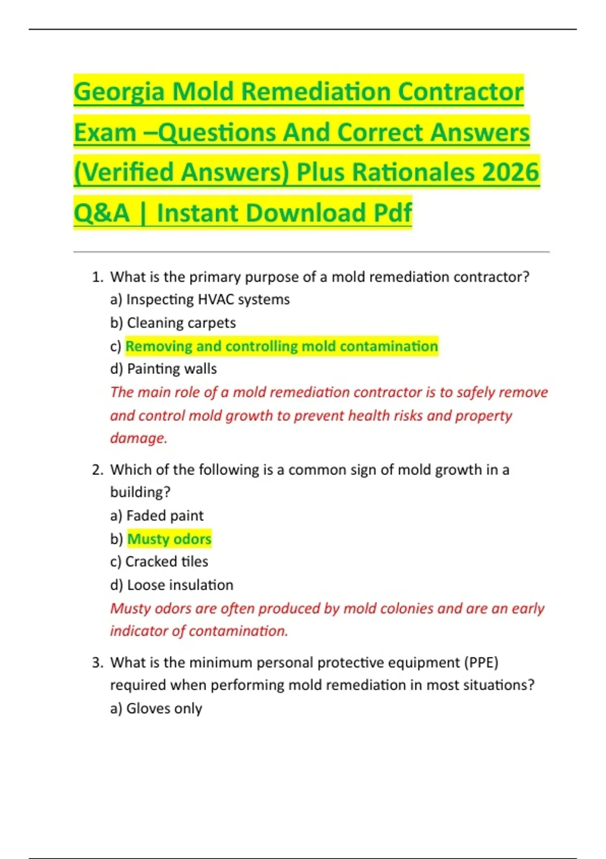 1. What is the primary purpose of a mold remediation contractor?