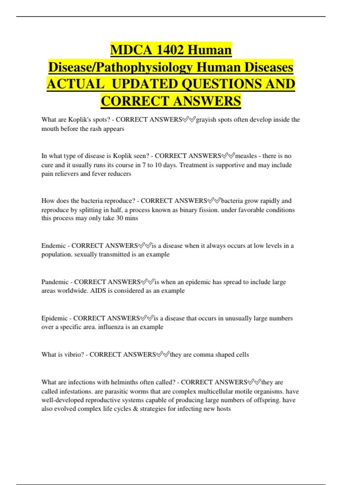 Epidemic - CORRECT ANSWERS✅✅is a disease that occurs in unusually large numbers