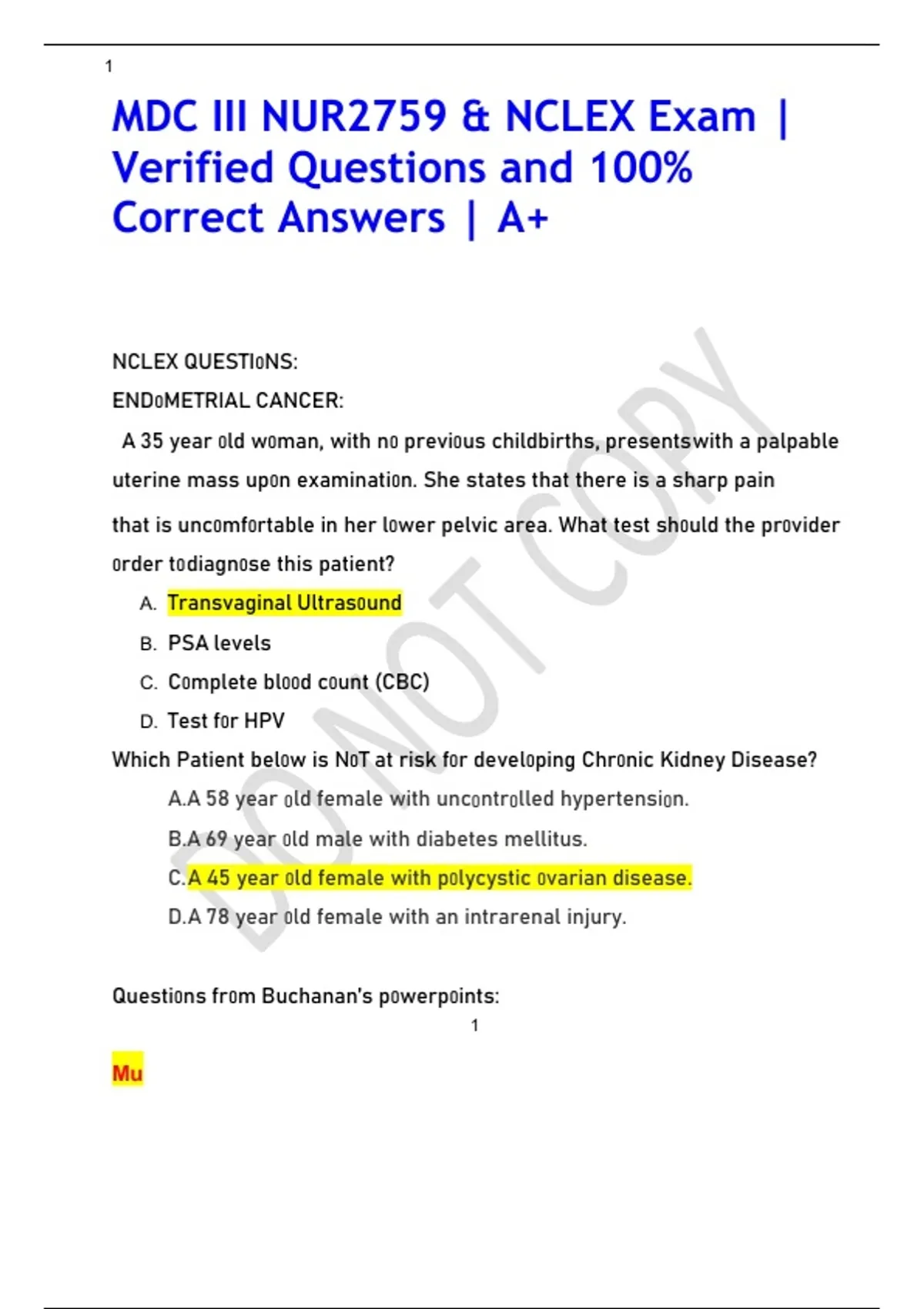 MDC III NUR2759 & NCLEX Exam |