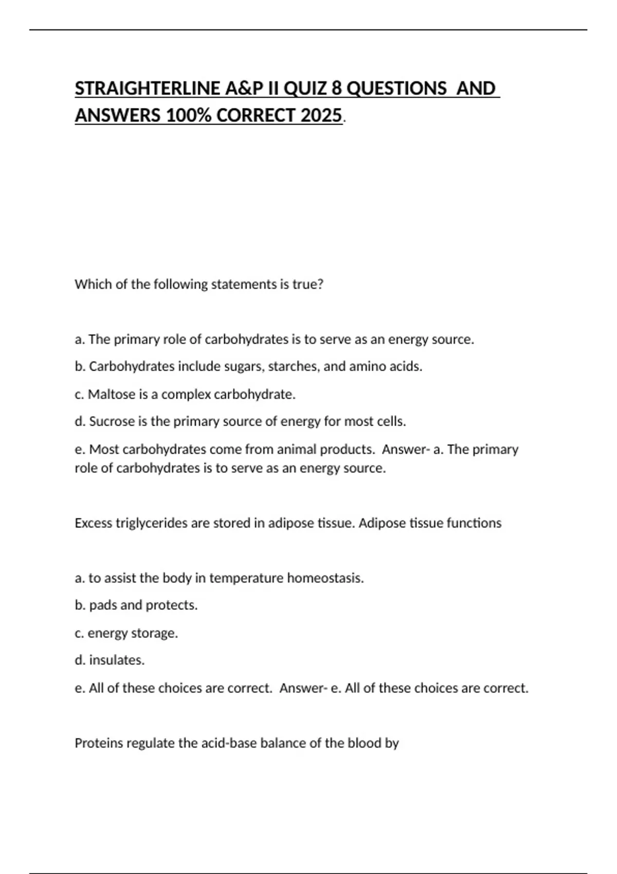 STRAIGHTERLINE A&P II QUIZ 8 QUESTIONS AND ANSWERS 100% CORRECT 2025