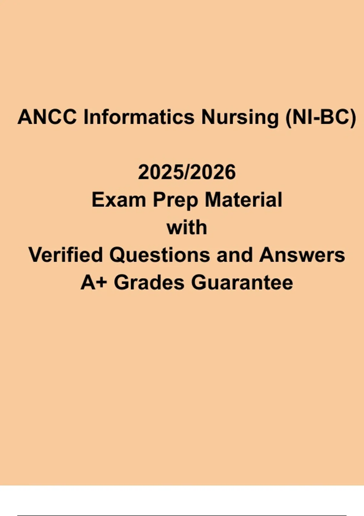 ANCC Informatics Nursing Certification (NI-BC) 2025/2026 | Verified Study Guide & Practice Exam Questions