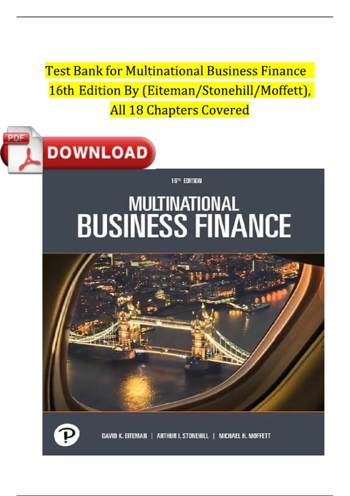 Test Bank for Multinational Business Finance (16th Edition by Eiteman, Stonehill & Moffett) – Complete Chapters 1–18 | Verified Exam Material
