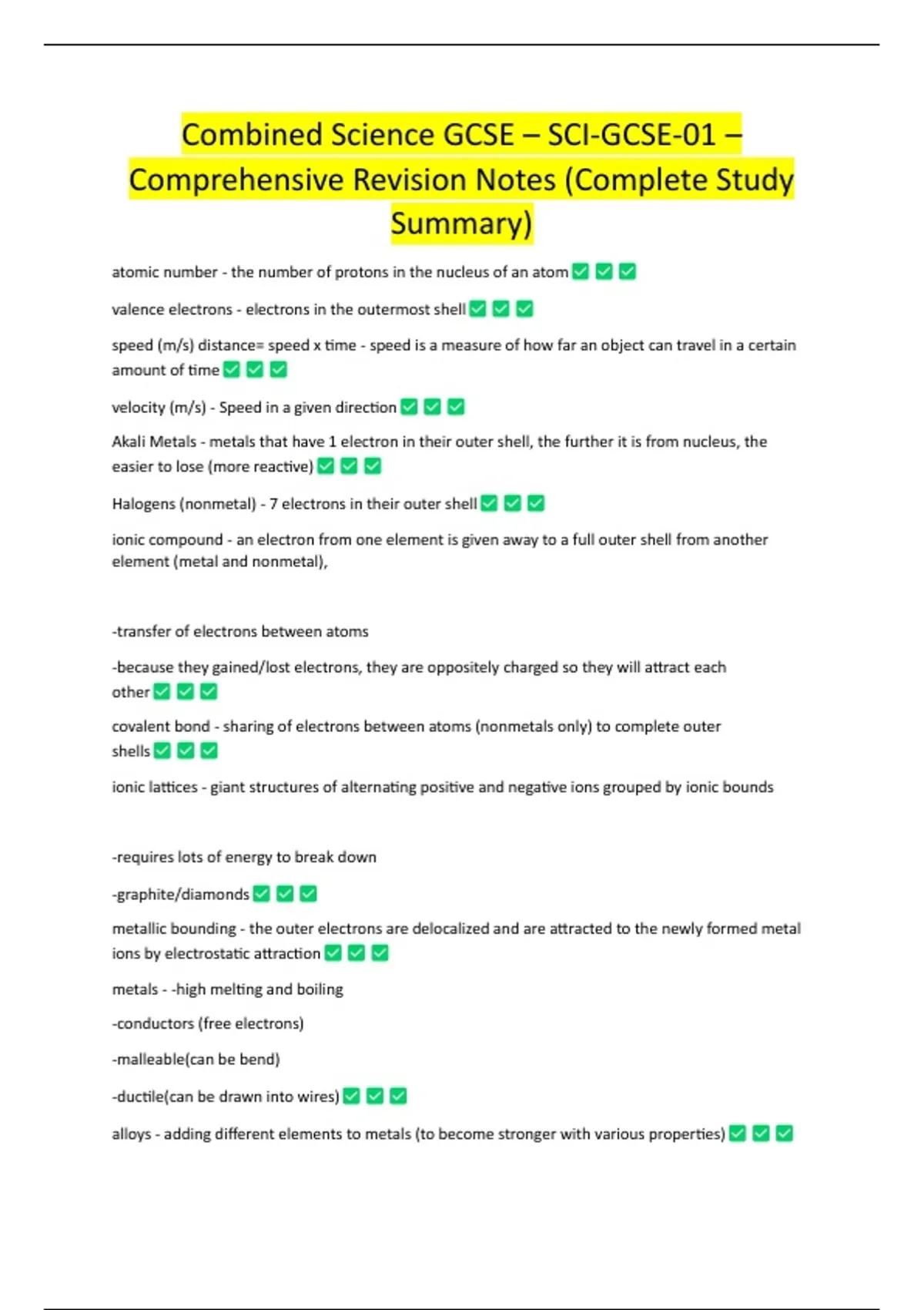Comprehensive Revision Notes (Complete Study