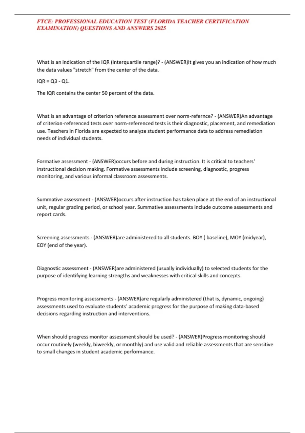 FTCE: PROFESSIONAL EDUCATION TEST (FLORIDA TEACHER CERTIFICATION EXAMINATION) QUESTIONS AND ANSWERS 2025