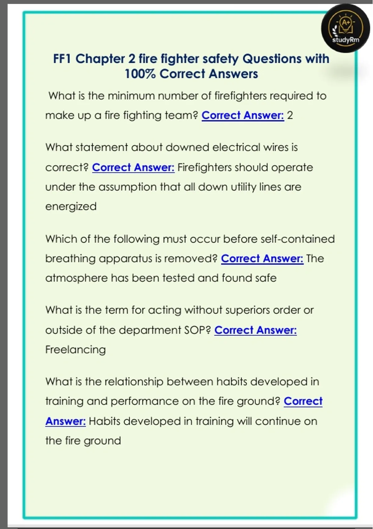 correct? Correct Answer: Firefighters should operate