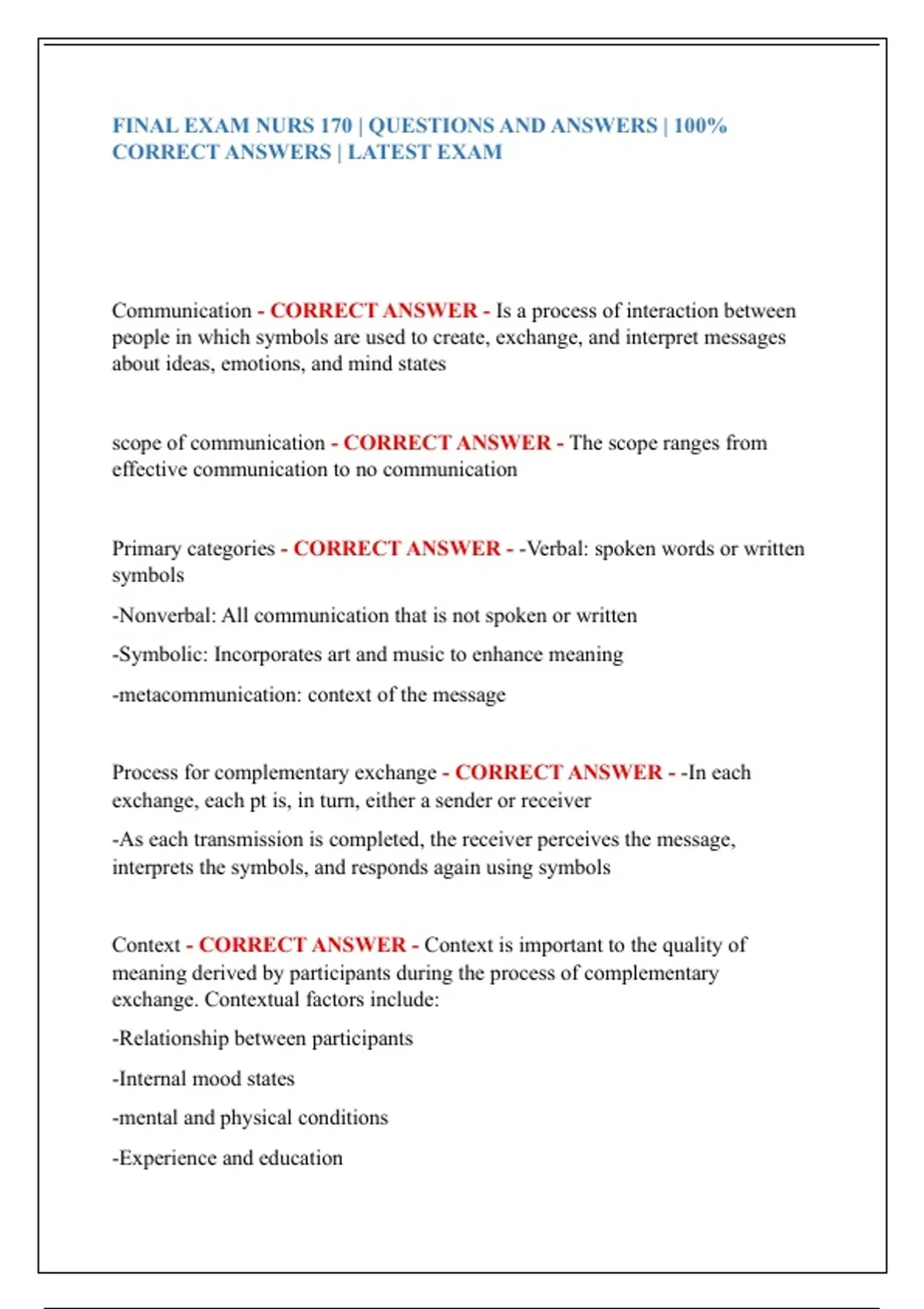 CORRECT ANSWERS | LATEST EXAM