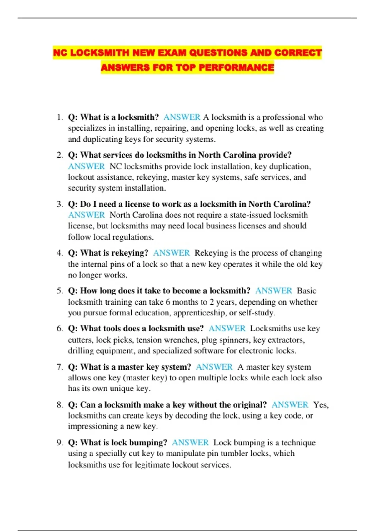 NC LOCKSMITH NEW EXAM QUESTIONS AND CORRECT