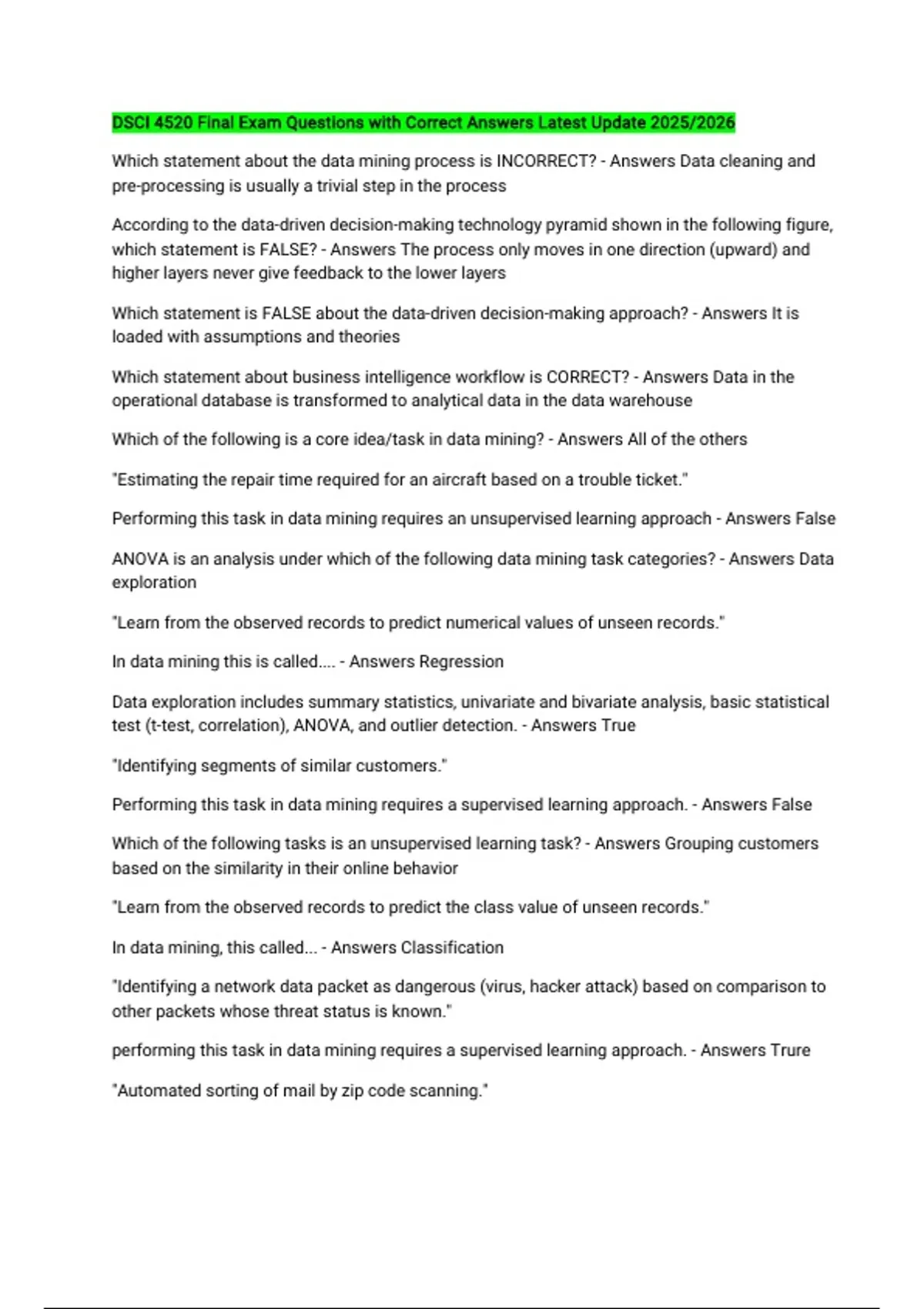 DSCI 4520 Final Exam Questions with Correct Answers Latest Update 2025/2026