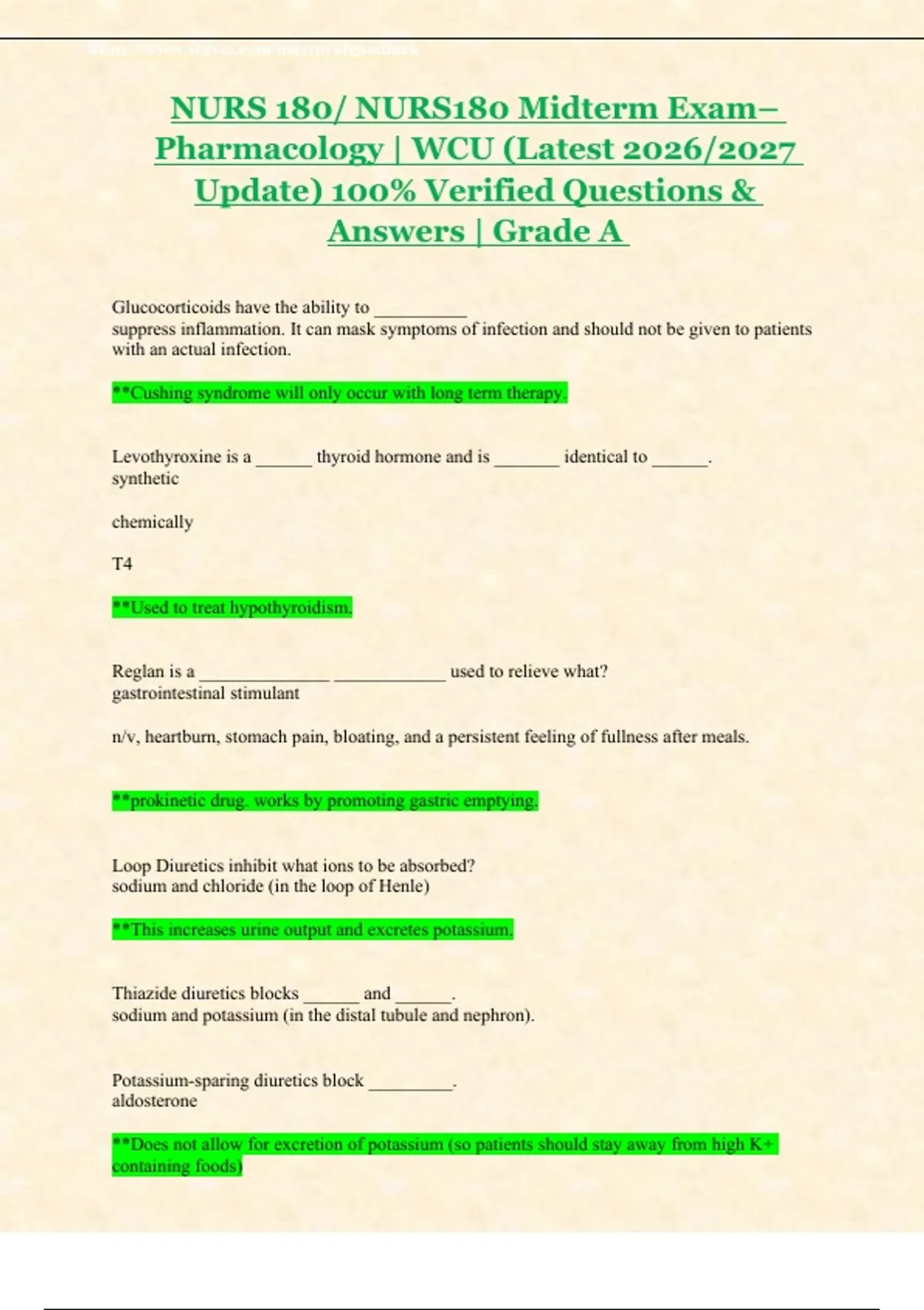 NURS 180/ NURS180 Midterm Exam–