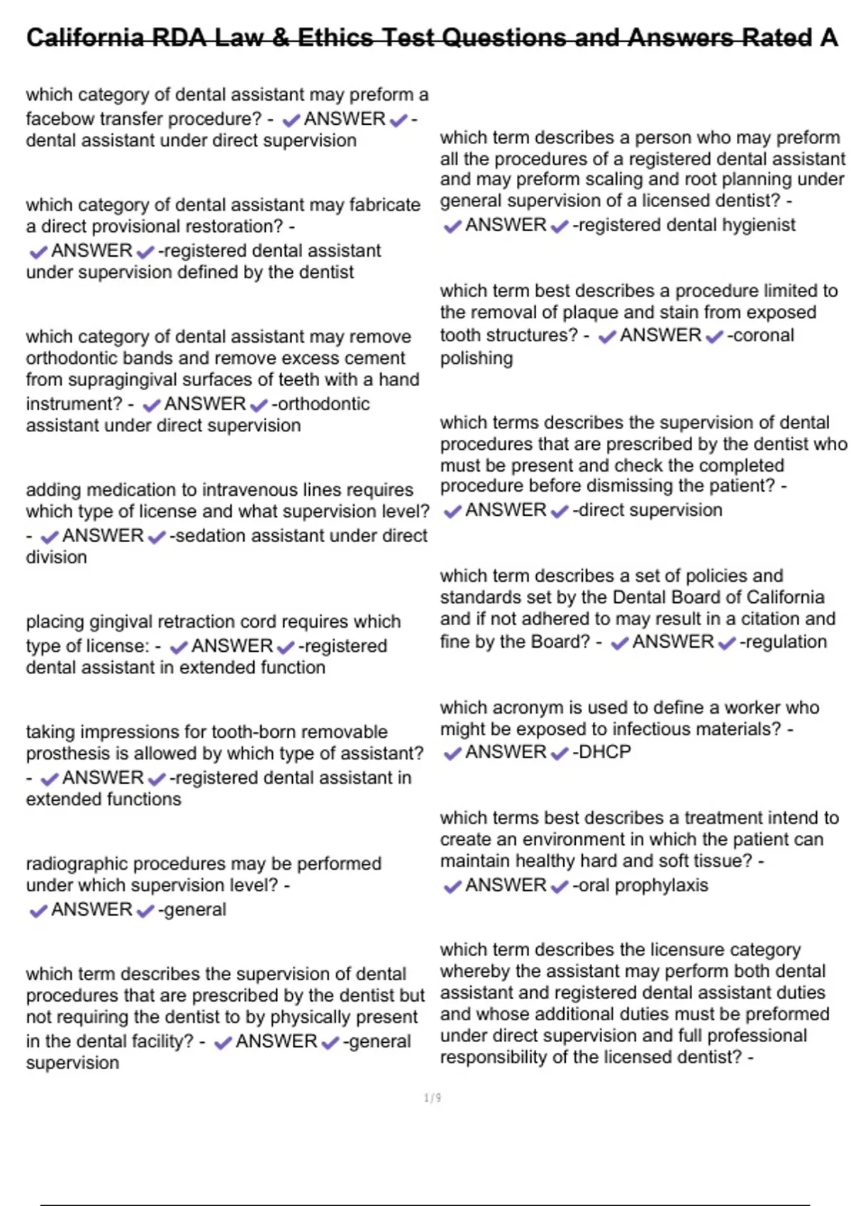 , California RDA Law & Ethics Test Questions and Answers Rated A