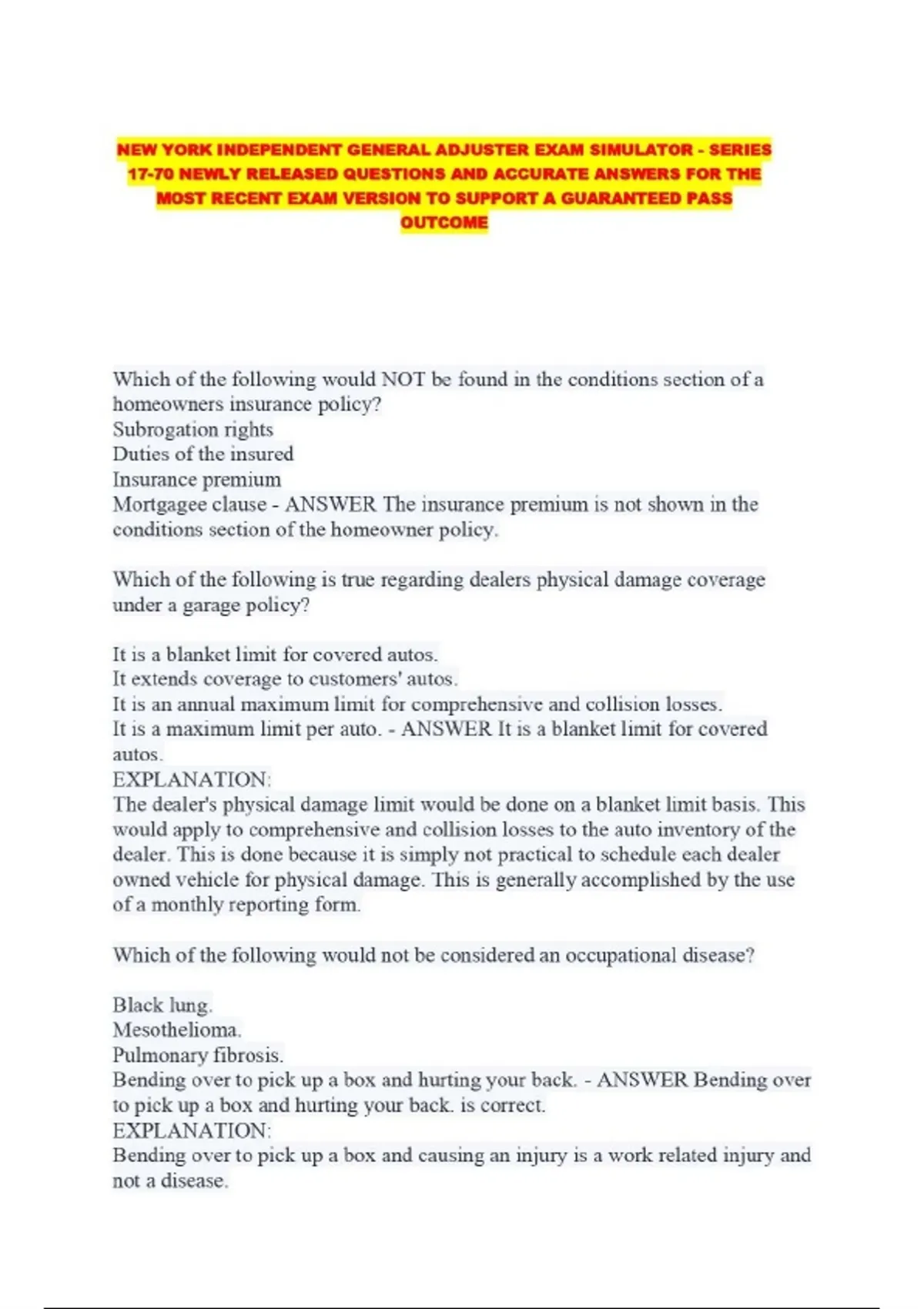 NEW YORK INDEPENDENT GENERAL ADJUSTER EXAM SIMULATOR - SERIES 17-70 NEWLY RELEASED QUESTIONS AND ACCURATE ANSWERS FOR THE MOST RECENT EXAM VERSION TO SUPPORT A GUARANTEED PASS OUTCOME....