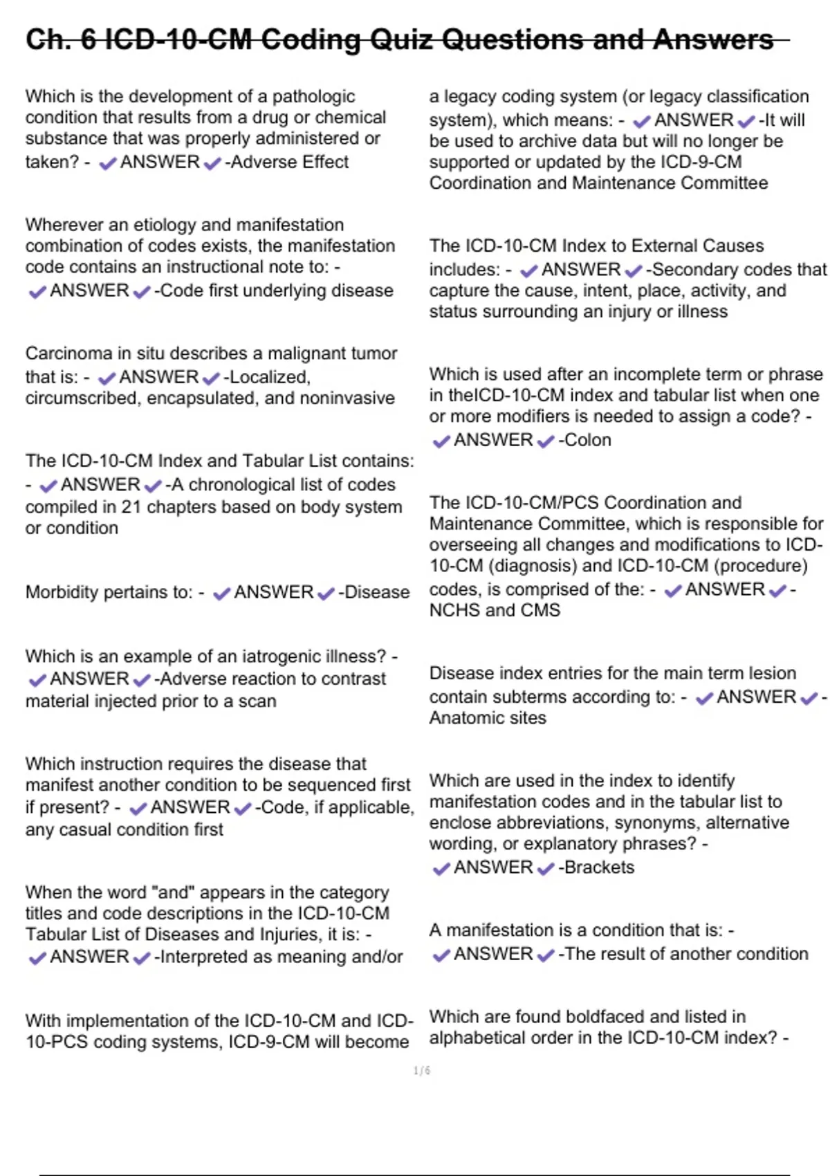 , Ch. 6 ICD-10-CM Coding Quiz Questions and Answers