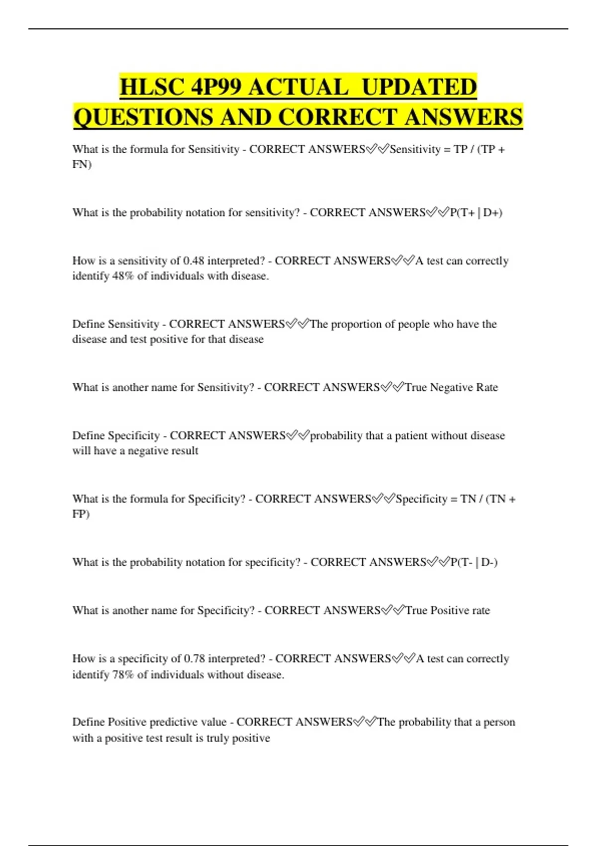 Define Positive predictive value - CORRECT ANSWERS✅✅The probability that a person