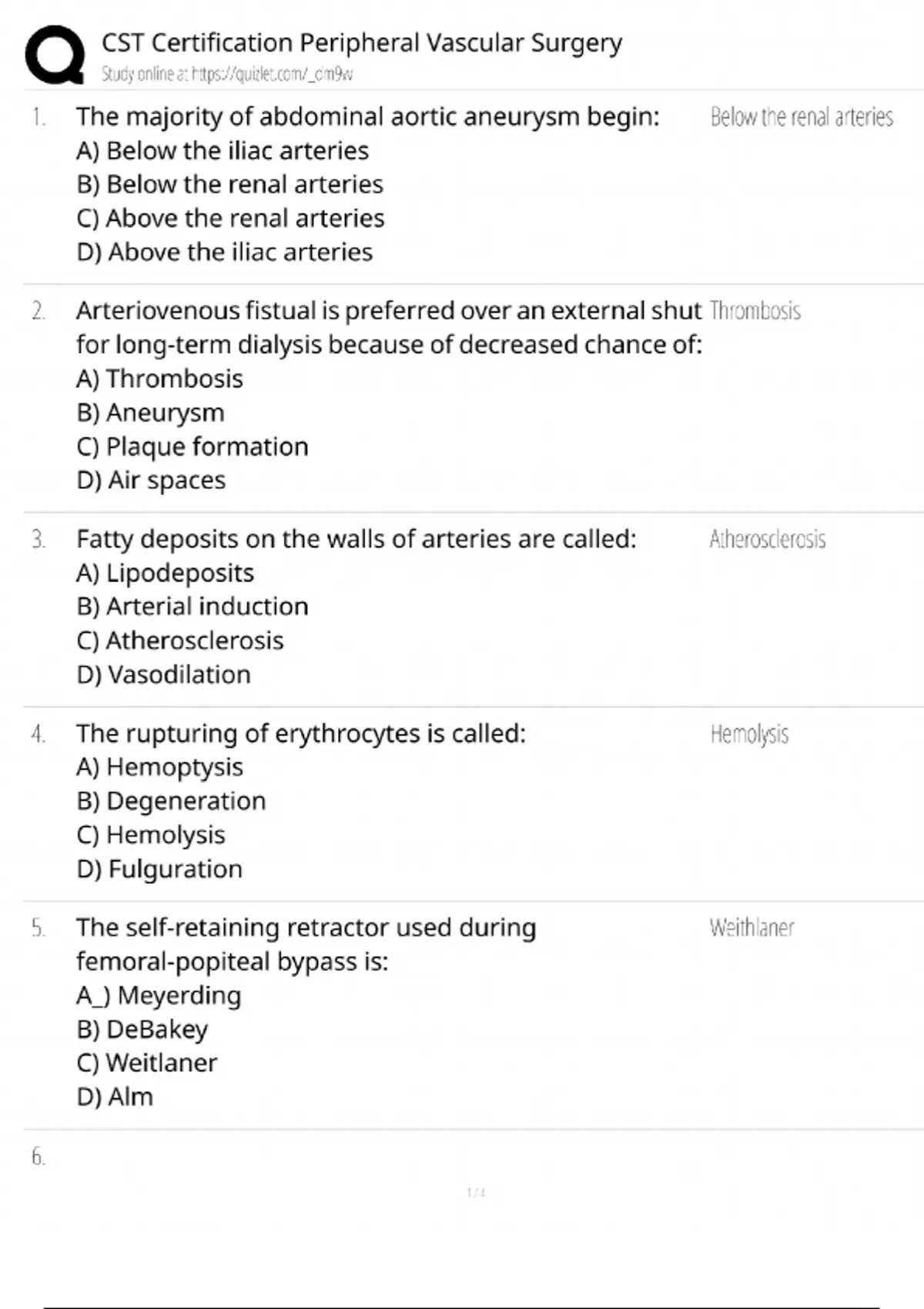 CST Certification Peripheral Vascular Surgery / Surgical Technologist Guide / 2025 Update / Score 100%