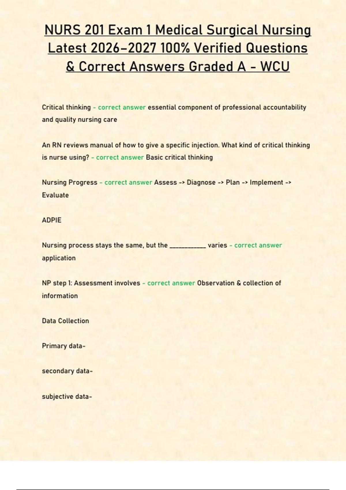 ,NURS 201 Exam 1 Medical Surgical Nursing