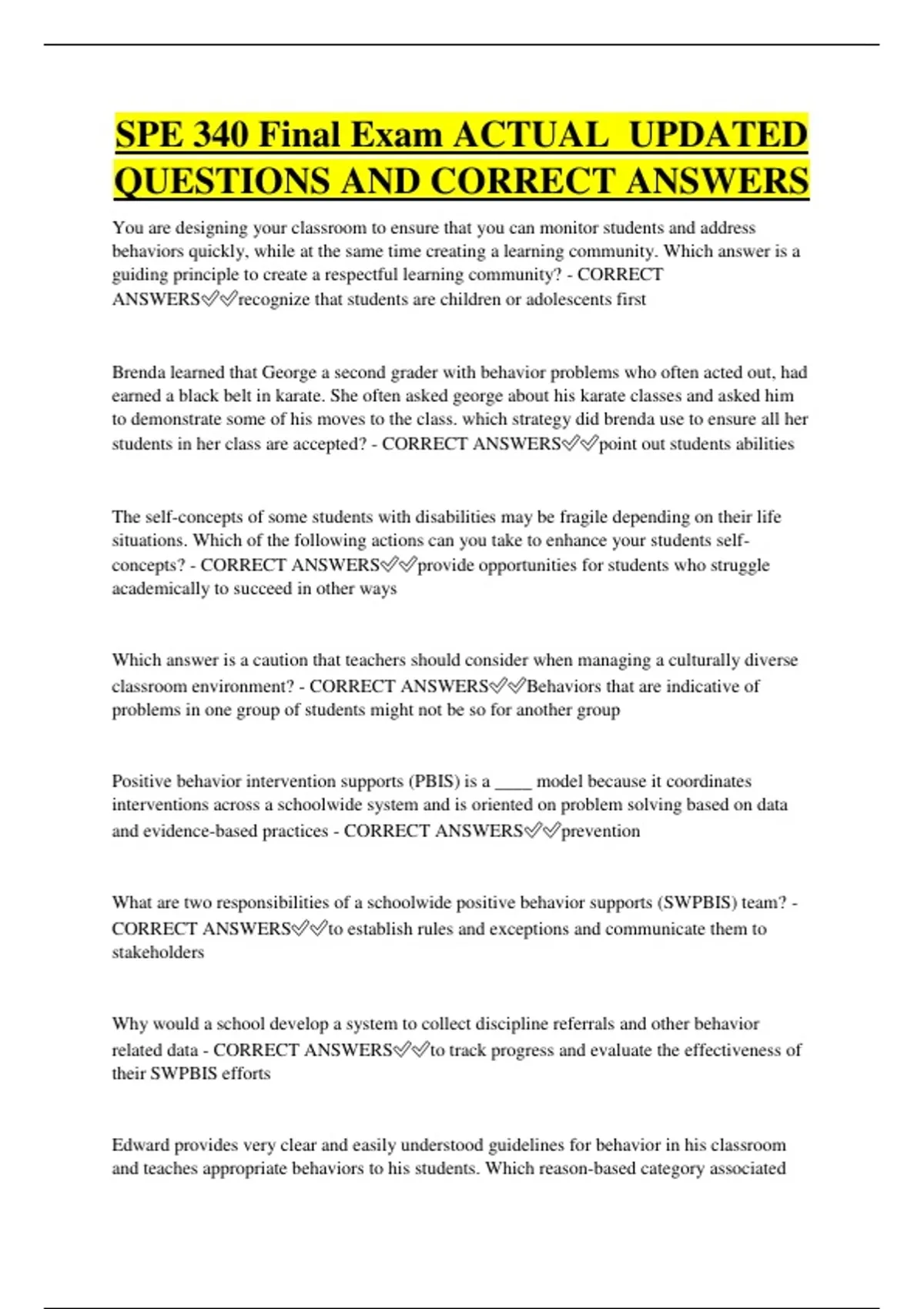 classroom environment? - CORRECT ANSWERS✅✅Behaviors that are indicative of
