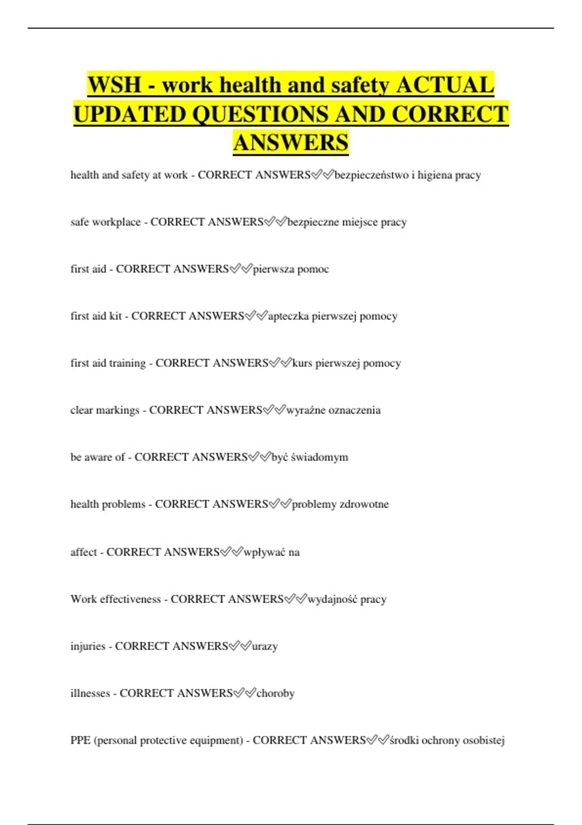 health and safety at work - CORRECT ANSWERS✅✅bezpieczeństwo i higiena pracy