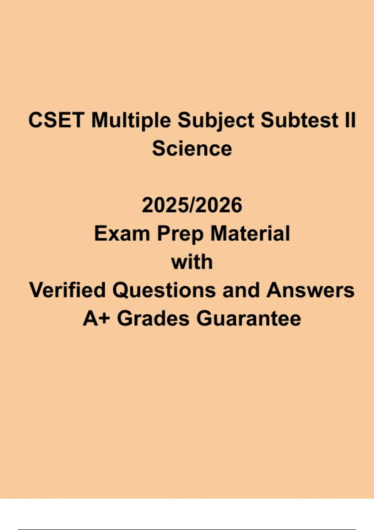 CSET Multiple Subject Subtest II Science 2025/2026 | Verified Practice Questions & Study Guide