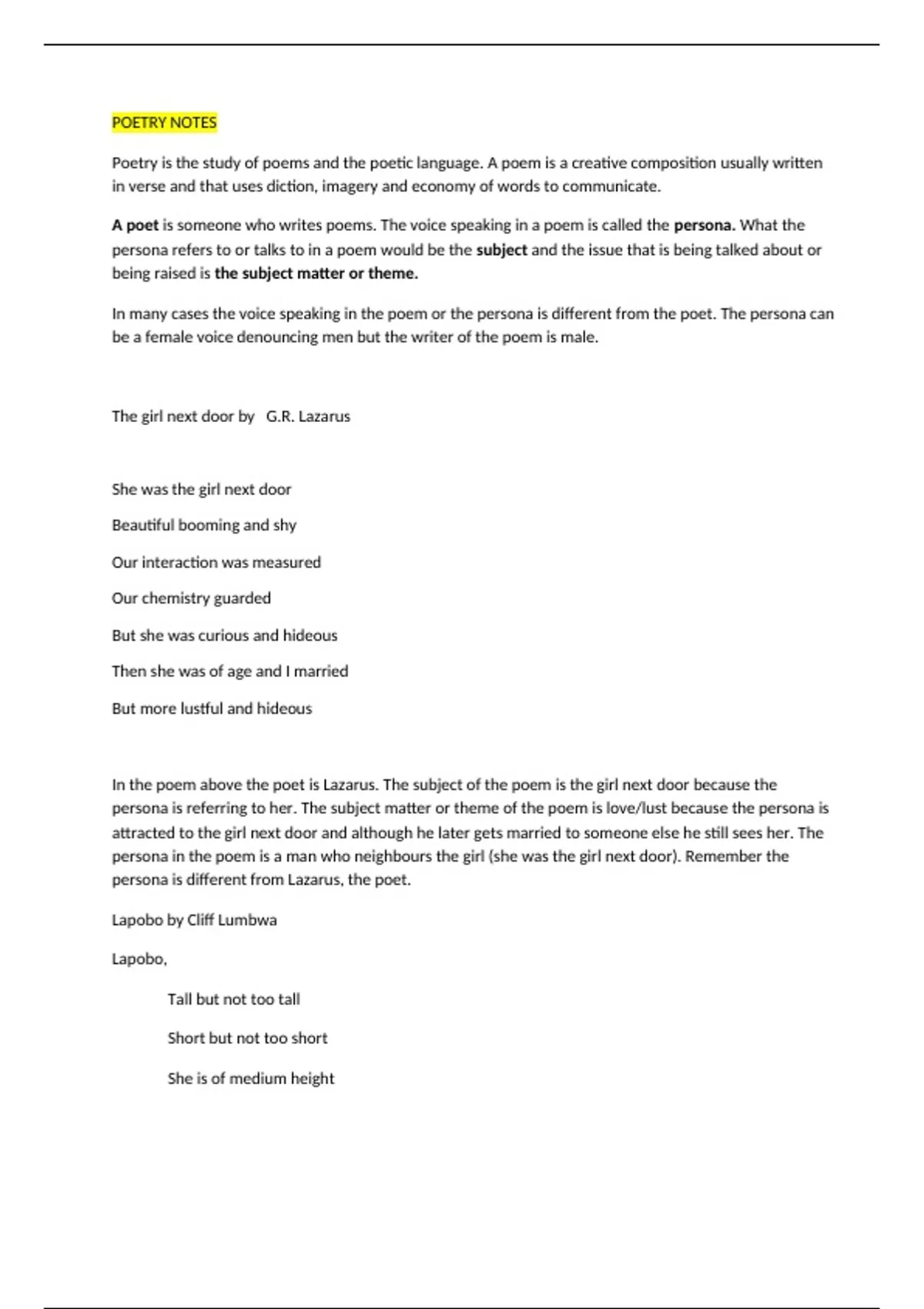 POETRY NOTES